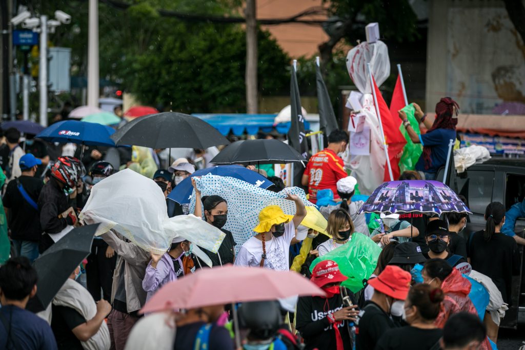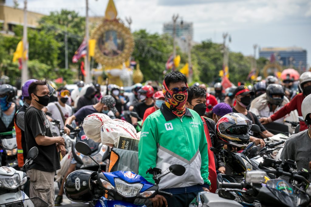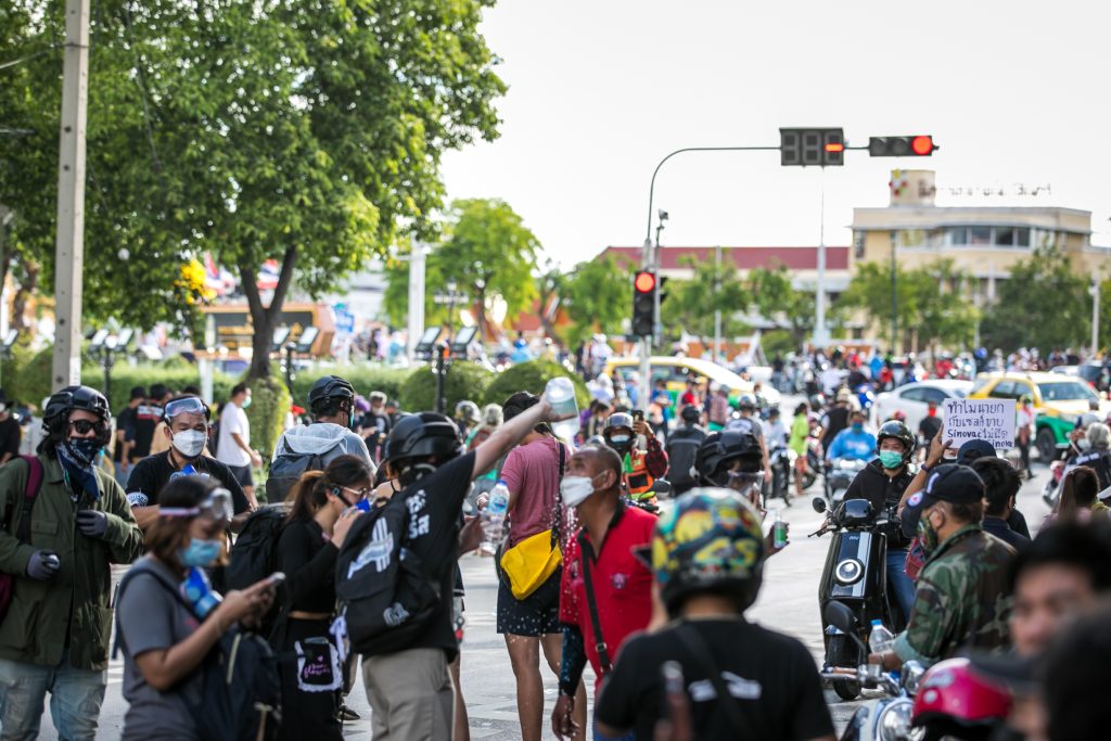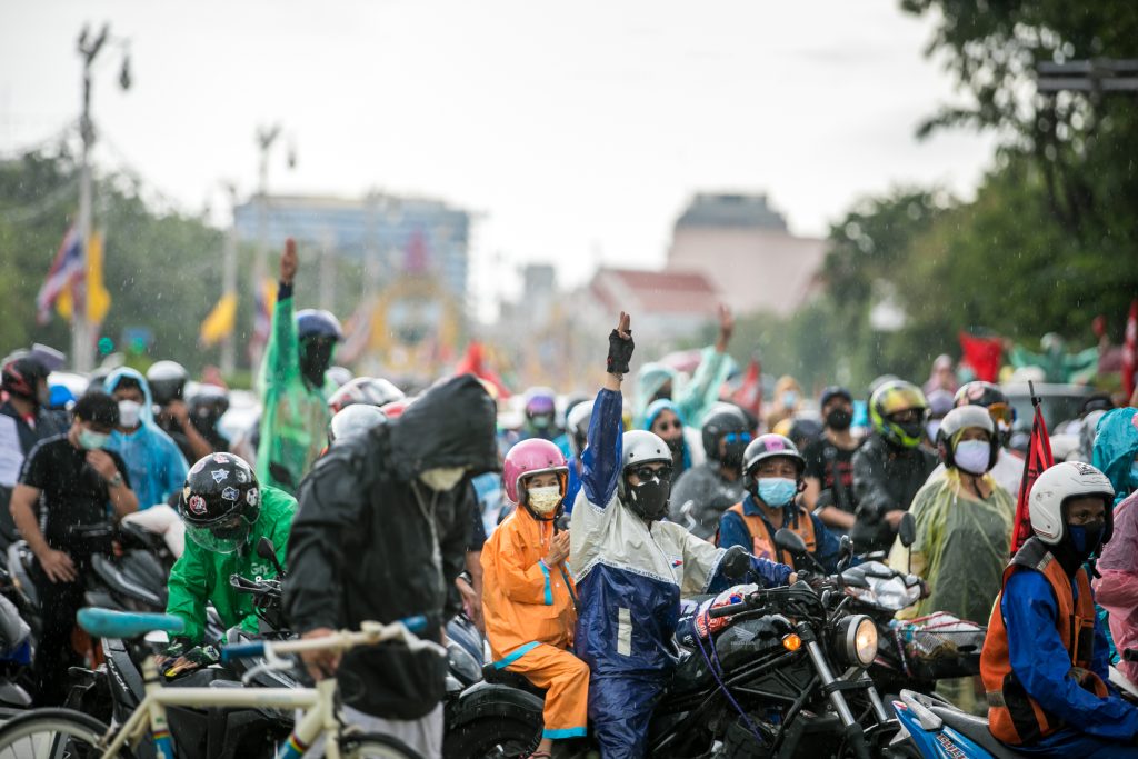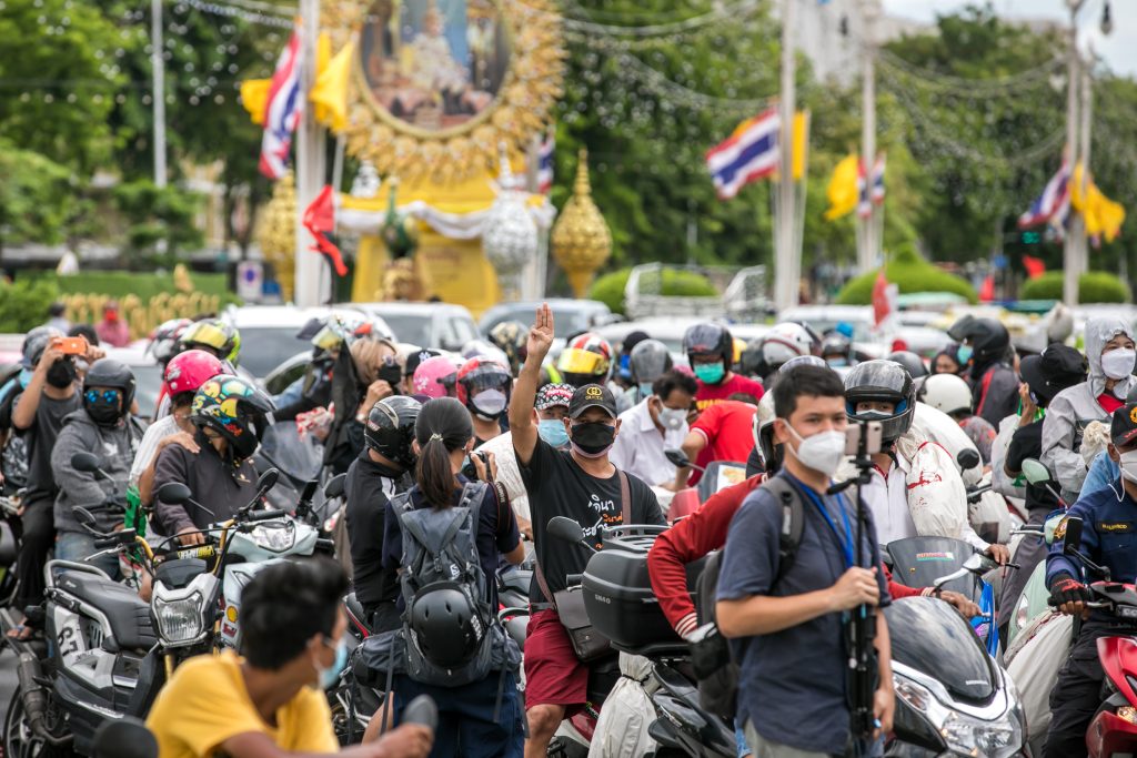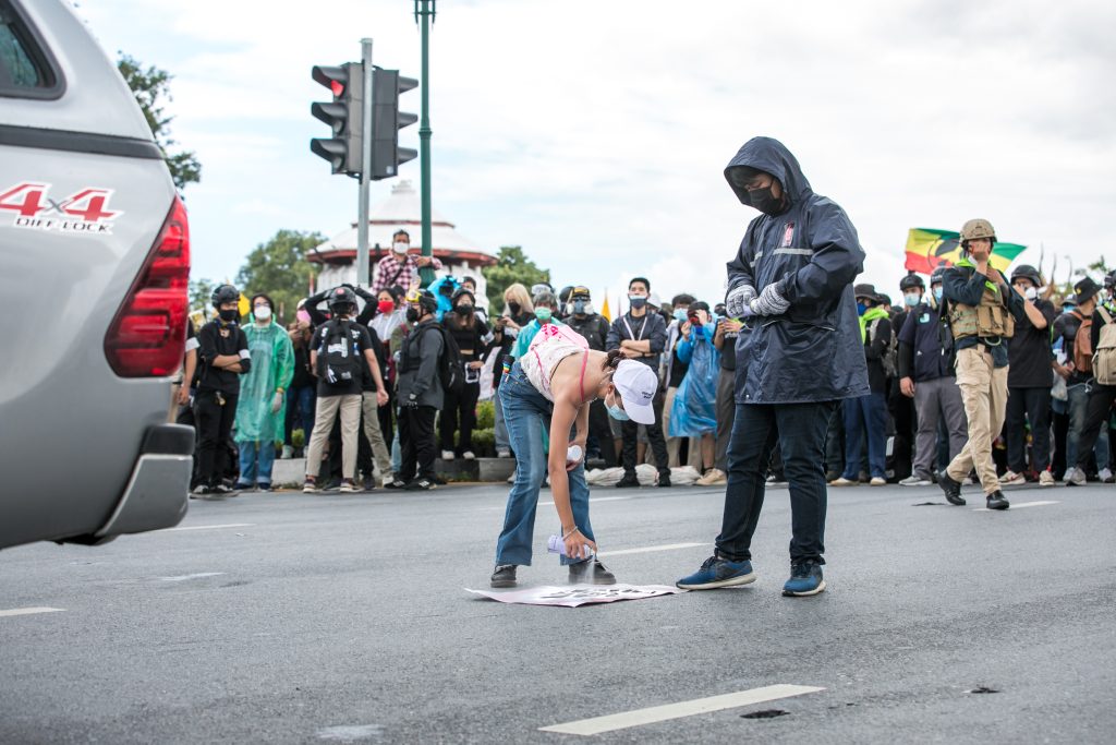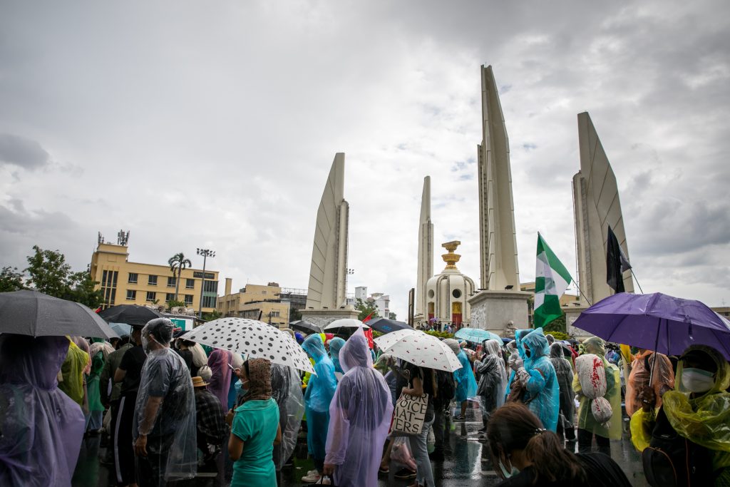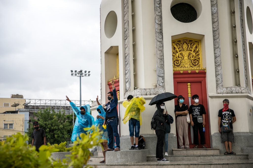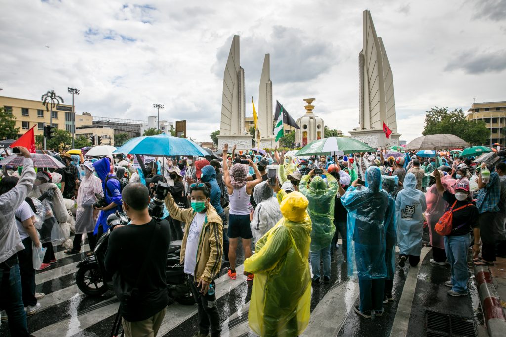 ภาพกิจกรรมการชุมนุมท่ามกลางการแพร่ระบาดของโควิด-19 นำโดยเยาวชนปลดแอก พร้อมกลุ่มแนวร่วมต่างๆ กับข้อเรียกร้อง 3 ข้อ คือ พล.อ.ประยุทธ์ จันทร์โอชา ต้องลาออกโดยไม่มีเงื่อนไข ปรับลดงบประมาณสถาบัน-กองทัพเพื่อนำมาใช้แก้ปัญหาโควิด และ หยุดซื้อวัคซีนด้อยคุณภาพที่เอื้อประโยชน์ต่อนายทุน แล้วไปจัดหาวัคซีนคุณภาพสูงมาฉีดให้กับประชาชนโดยเร็วที่สุด ผู้ชุมนุมตั้งขบวนบริเวณอนุสาวรีย์ประชาธิปไตย ก่อนมุ่งหน้าไปยังทำเนียบรัฐบาล โดยมีการแสดงออกในหลายรูปแบบ ทั้งป้ายข้อความต่างๆ หุ่นฟางที่ทำคล้ายศพเป็นสัญลักษณ์แทนผู้ที่เสียชีวิตจากโควิดจำนวนมากภายใต้การบริหารที่ล้มเหลวของรัฐบาล