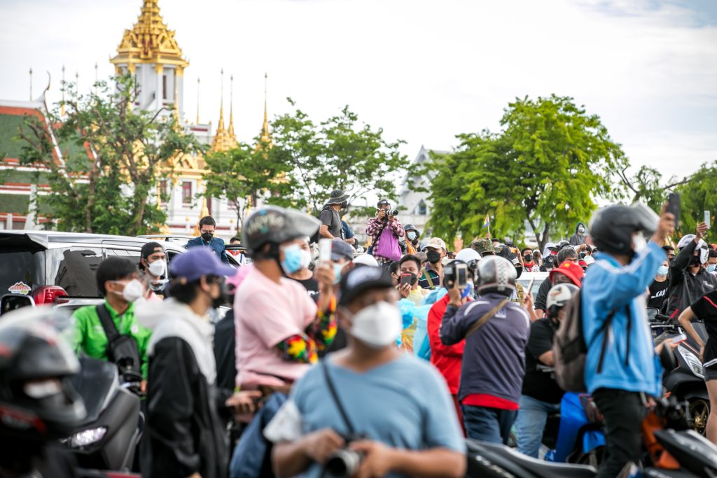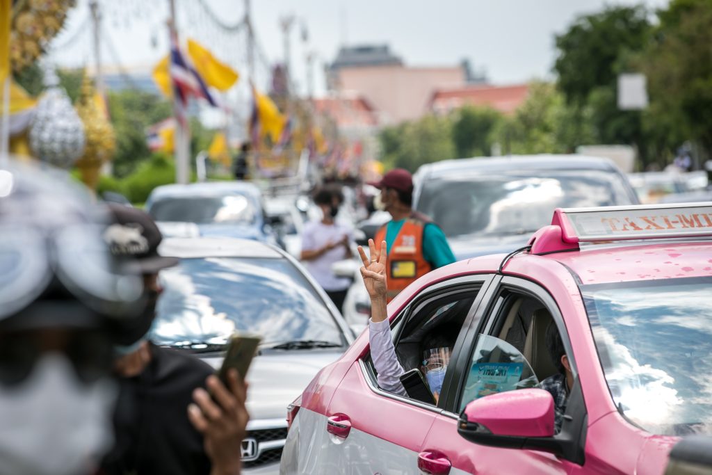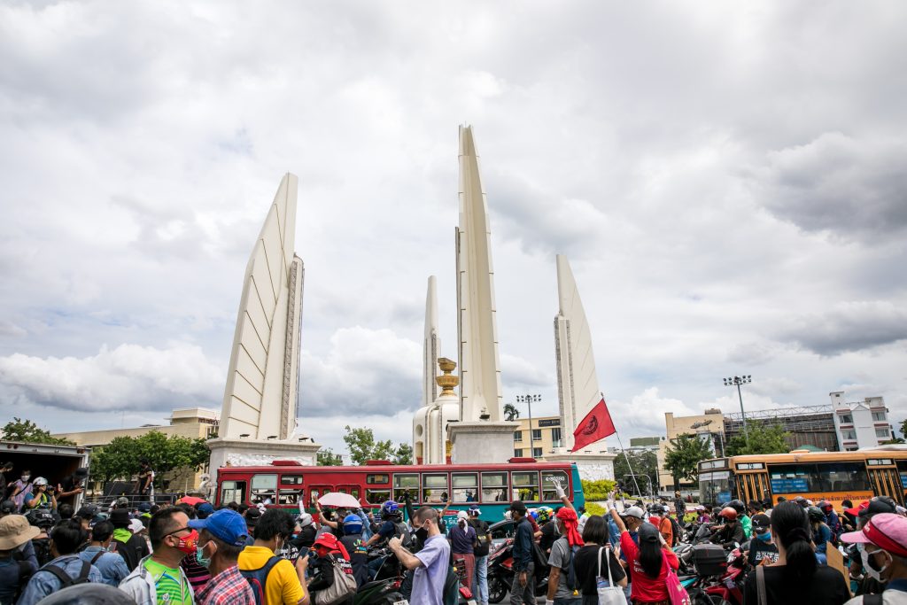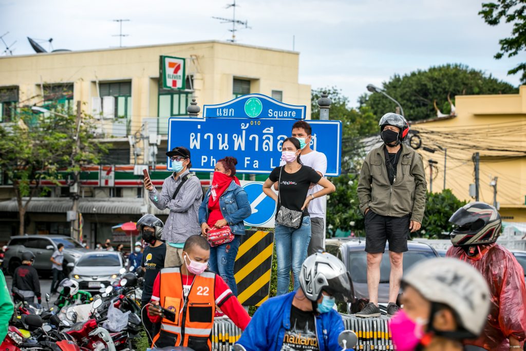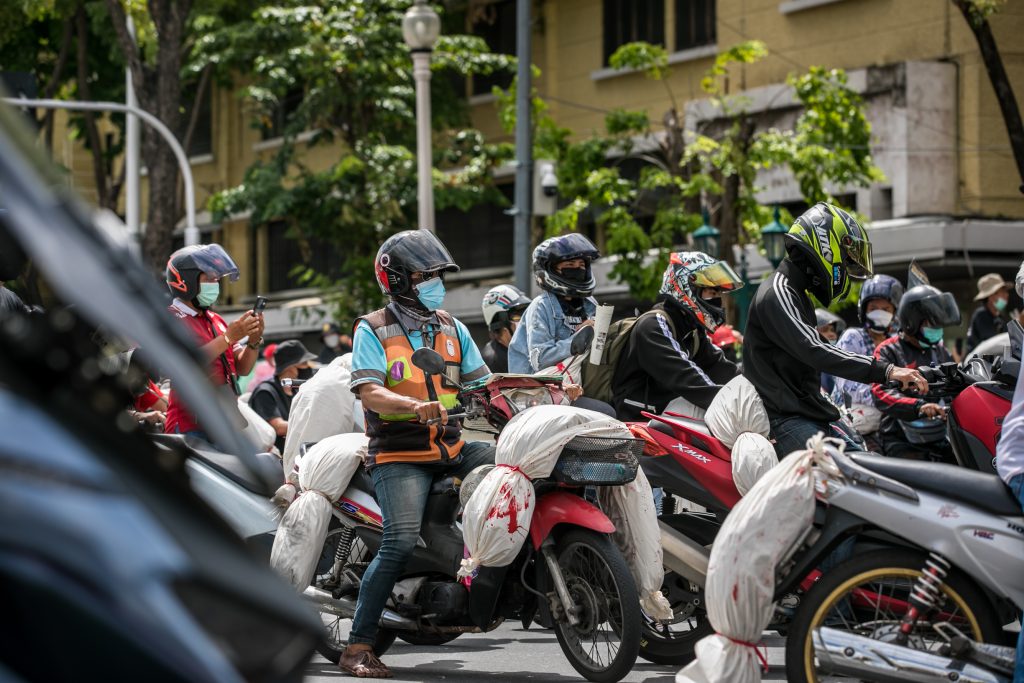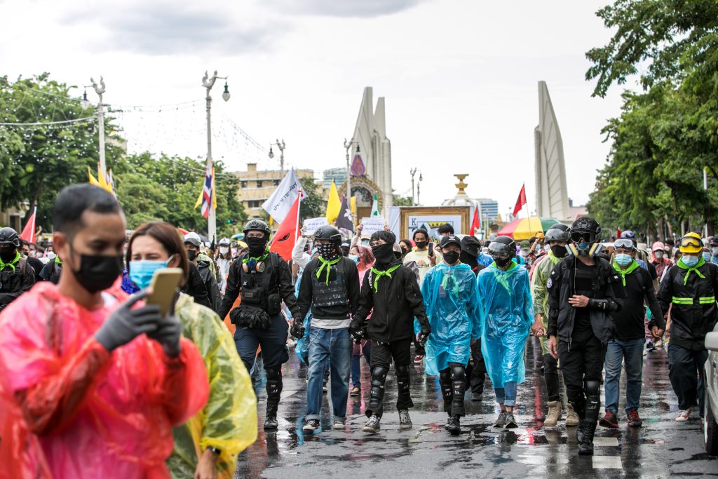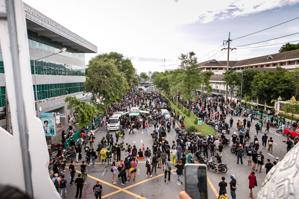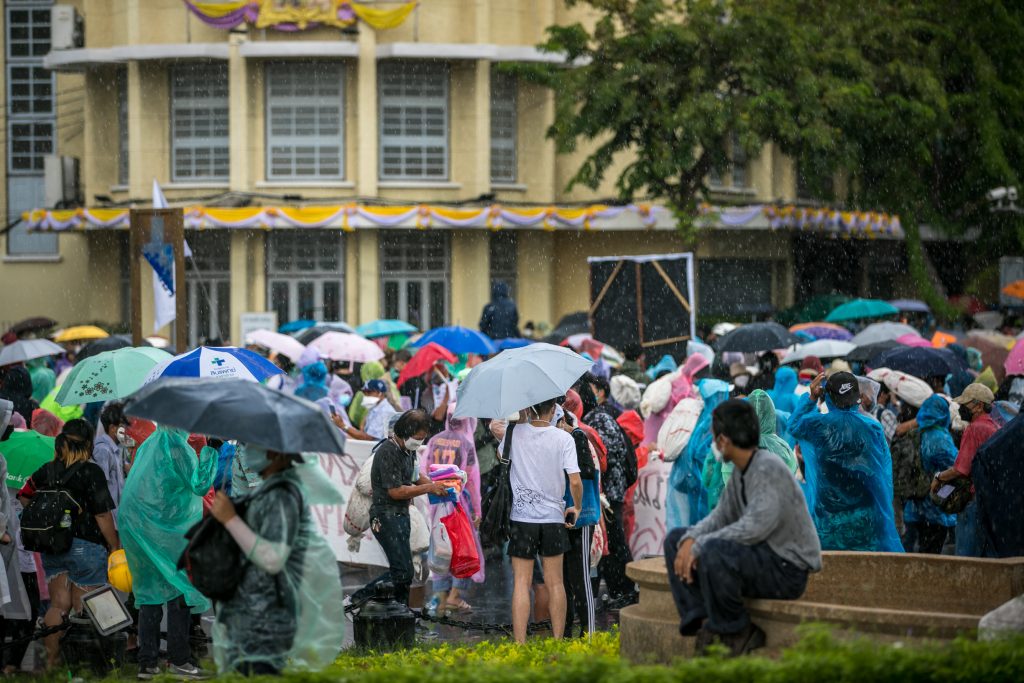 ภาพกิจกรรมการชุมนุมท่ามกลางการแพร่ระบาดของโควิด-19 นำโดยเยาวชนปลดแอก พร้อมกลุ่มแนวร่วมต่างๆ กับข้อเรียกร้อง 3 ข้อ คือ พล.อ.ประยุทธ์ จันทร์โอชา ต้องลาออกโดยไม่มีเงื่อนไข ปรับลดงบประมาณสถาบัน-กองทัพเพื่อนำมาใช้แก้ปัญหาโควิด และ หยุดซื้อวัคซีนด้อยคุณภาพที่เอื้อประโยชน์ต่อนายทุน แล้วไปจัดหาวัคซีนคุณภาพสูงมาฉีดให้กับประชาชนโดยเร็วที่สุด ผู้ชุมนุมตั้งขบวนบริเวณอนุสาวรีย์ประชาธิปไตย ก่อนมุ่งหน้าไปยังทำเนียบรัฐบาล โดยมีการแสดงออกในหลายรูปแบบ ทั้งป้ายข้อความต่างๆ หุ่นฟางที่ทำคล้ายศพเป็นสัญลักษณ์แทนผู้ที่เสียชีวิตจากโควิดจำนวนมากภายใต้การบริหารที่ล้มเหลวของรัฐบาล