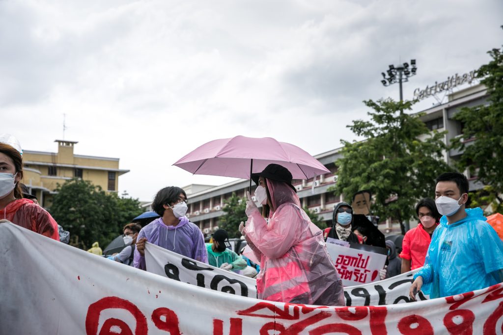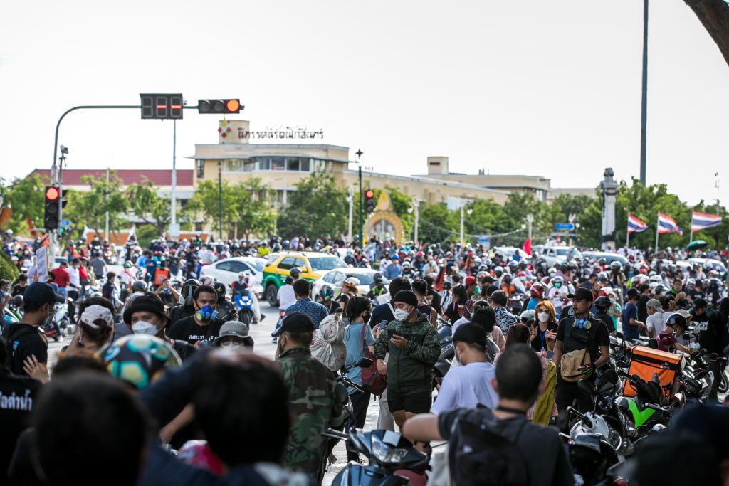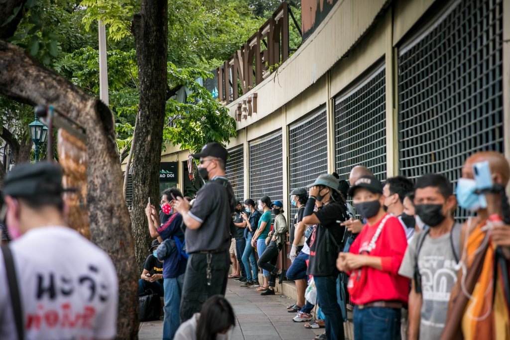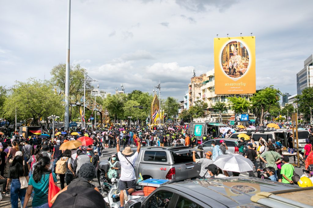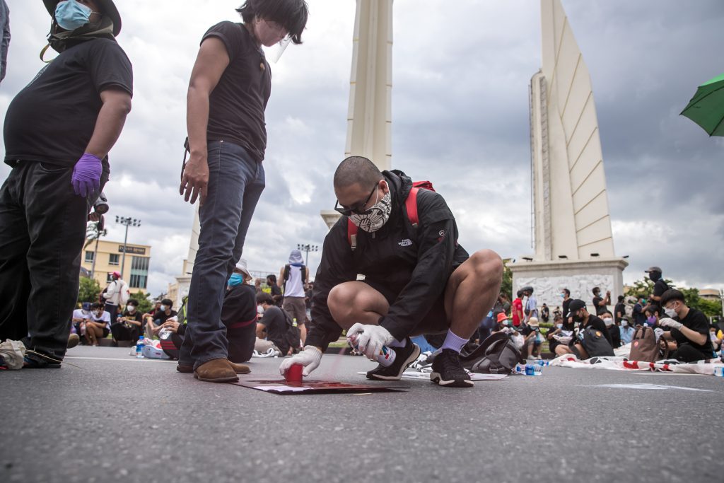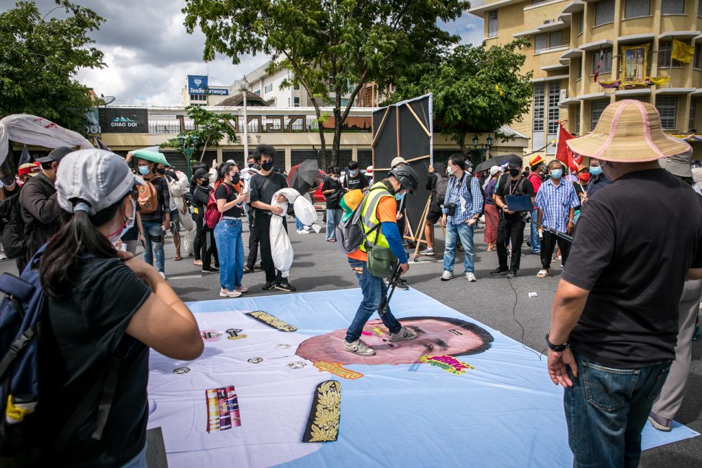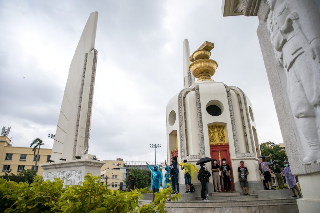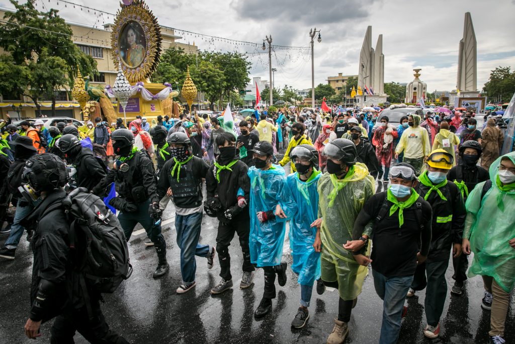 ภาพกิจกรรมการชุมนุมท่ามกลางการแพร่ระบาดของโควิด-19 นำโดยเยาวชนปลดแอก พร้อมกลุ่มแนวร่วมต่างๆ กับข้อเรียกร้อง 3 ข้อ คือ พล.อ.ประยุทธ์ จันทร์โอชา ต้องลาออกโดยไม่มีเงื่อนไข ปรับลดงบประมาณสถาบัน-กองทัพเพื่อนำมาใช้แก้ปัญหาโควิด และ หยุดซื้อวัคซีนด้อยคุณภาพที่เอื้อประโยชน์ต่อนายทุน แล้วไปจัดหาวัคซีนคุณภาพสูงมาฉีดให้กับประชาชนโดยเร็วที่สุด ผู้ชุมนุมตั้งขบวนบริเวณอนุสาวรีย์ประชาธิปไตย ก่อนมุ่งหน้าไปยังทำเนียบรัฐบาล โดยมีการแสดงออกในหลายรูปแบบ ทั้งป้ายข้อความต่างๆ หุ่นฟางที่ทำคล้ายศพเป็นสัญลักษณ์แทนผู้ที่เสียชีวิตจากโควิดจำนวนมากภายใต้การบริหารที่ล้มเหลวของรัฐบาล