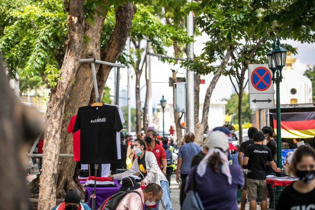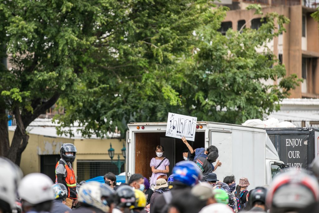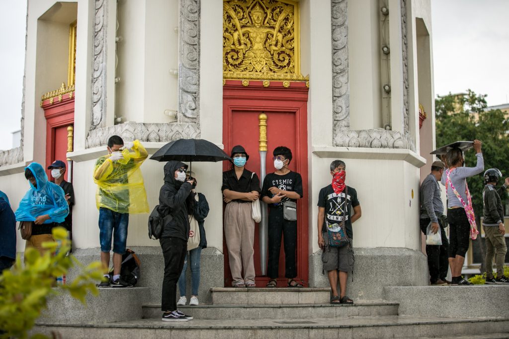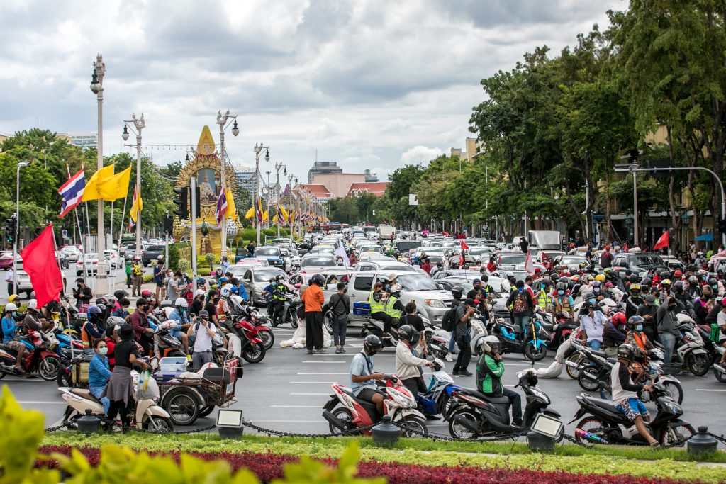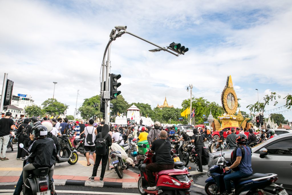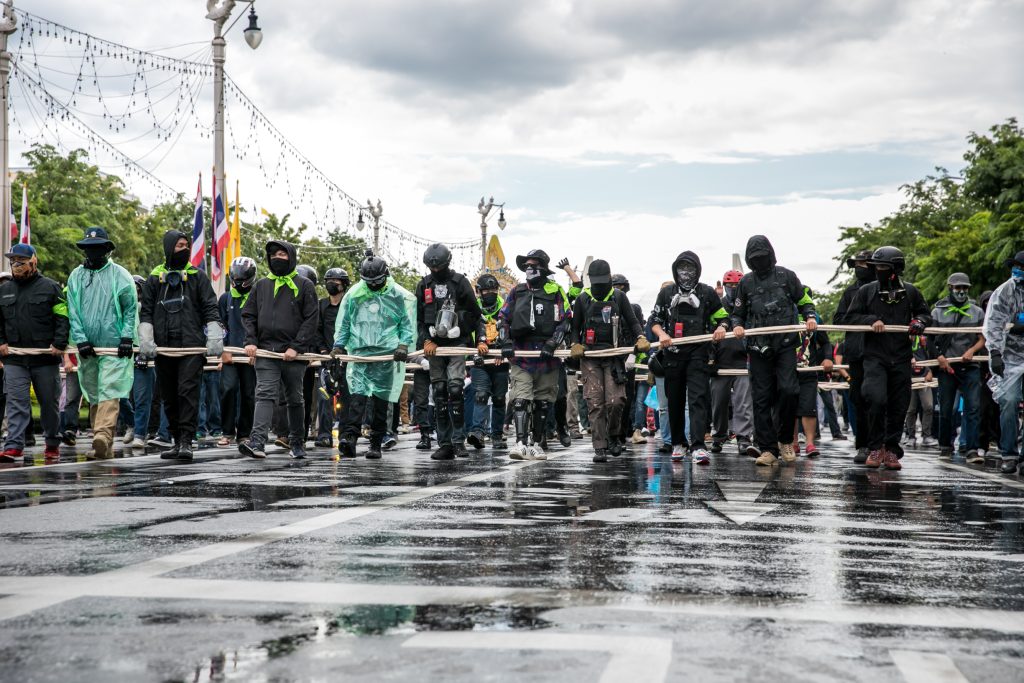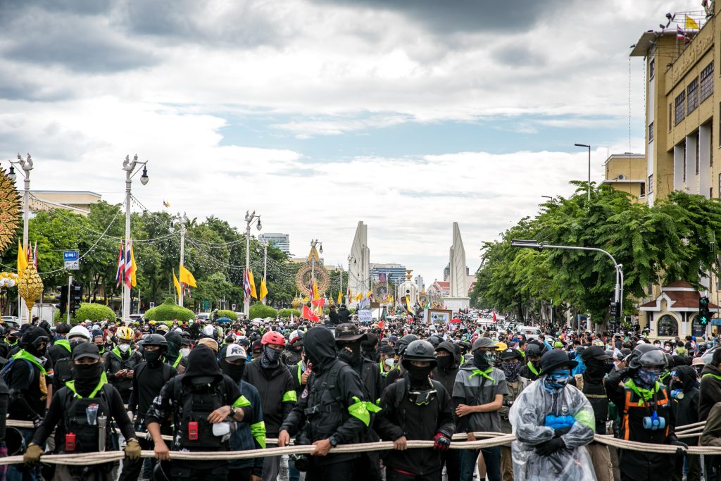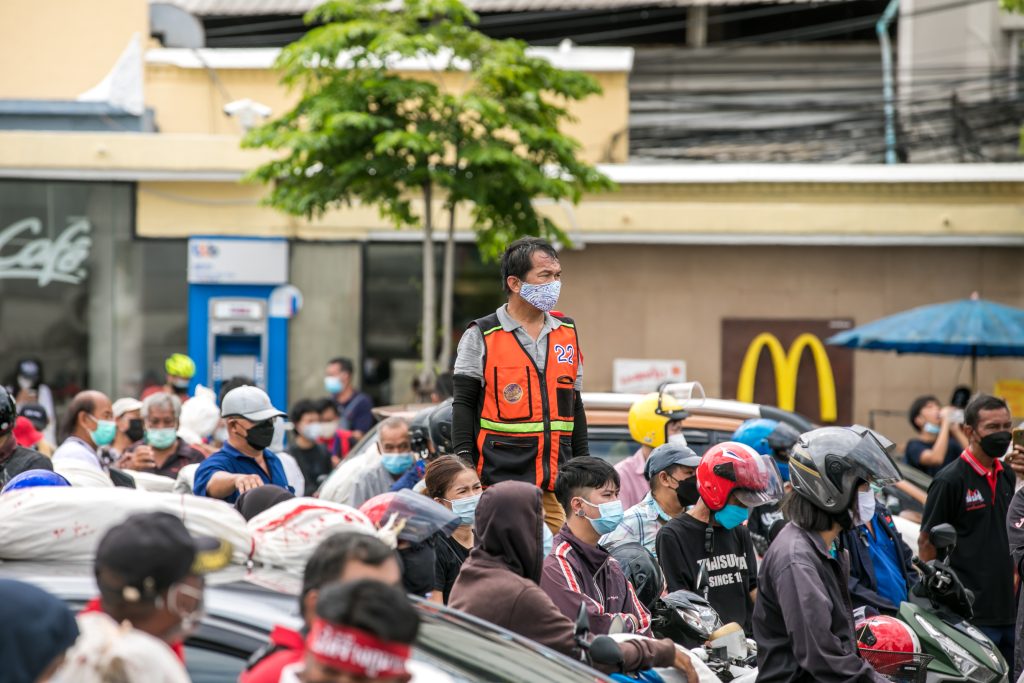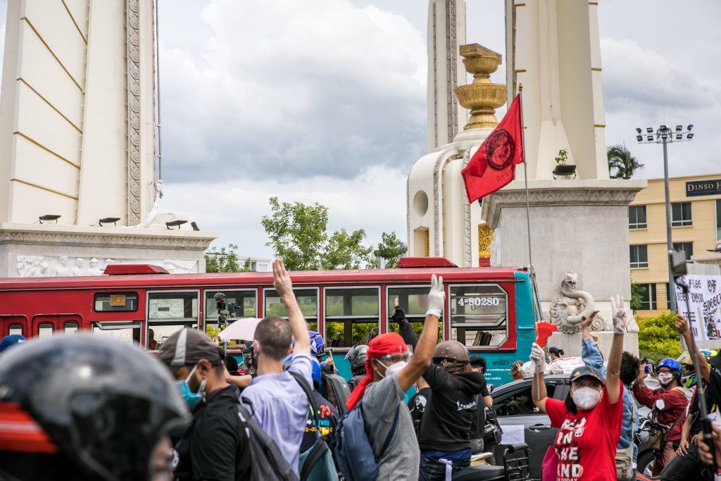 ภาพกิจกรรมการชุมนุมท่ามกลางการแพร่ระบาดของโควิด-19 นำโดยเยาวชนปลดแอก พร้อมกลุ่มแนวร่วมต่างๆ กับข้อเรียกร้อง 3 ข้อ คือ พล.อ.ประยุทธ์ จันทร์โอชา ต้องลาออกโดยไม่มีเงื่อนไข ปรับลดงบประมาณสถาบัน-กองทัพเพื่อนำมาใช้แก้ปัญหาโควิด และ หยุดซื้อวัคซีนด้อยคุณภาพที่เอื้อประโยชน์ต่อนายทุน แล้วไปจัดหาวัคซีนคุณภาพสูงมาฉีดให้กับประชาชนโดยเร็วที่สุด ผู้ชุมนุมตั้งขบวนบริเวณอนุสาวรีย์ประชาธิปไตย ก่อนมุ่งหน้าไปยังทำเนียบรัฐบาล โดยมีการแสดงออกในหลายรูปแบบ ทั้งป้ายข้อความต่างๆ หุ่นฟางที่ทำคล้ายศพเป็นสัญลักษณ์แทนผู้ที่เสียชีวิตจากโควิดจำนวนมากภายใต้การบริหารที่ล้มเหลวของรัฐบาล