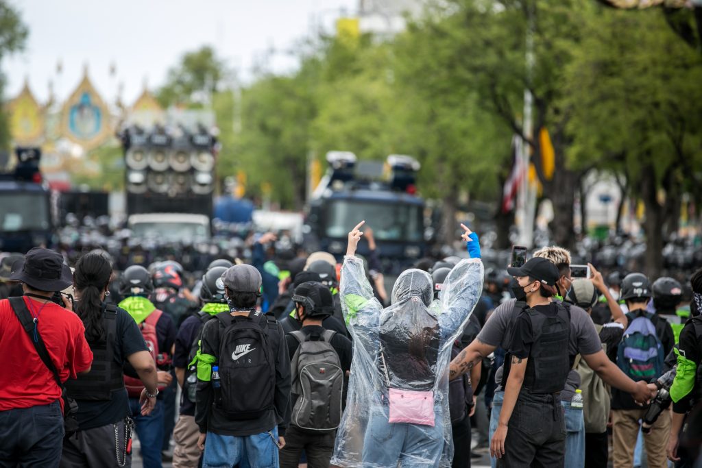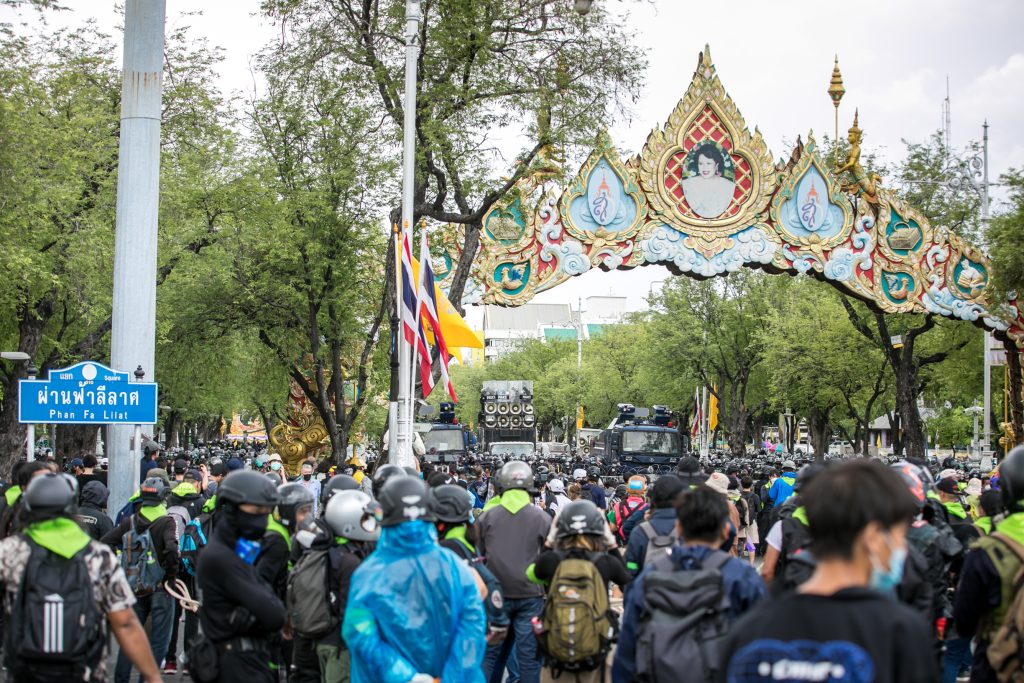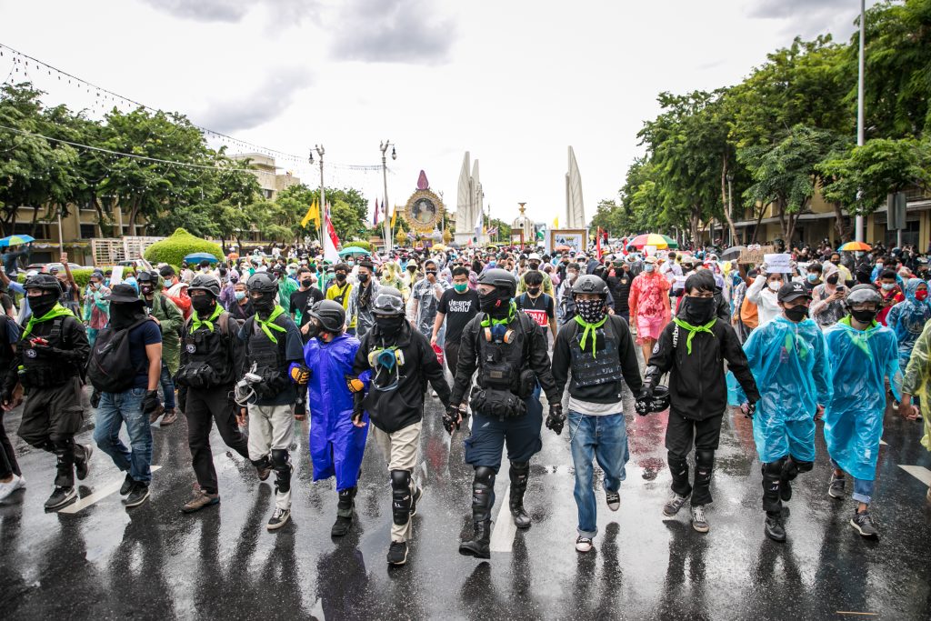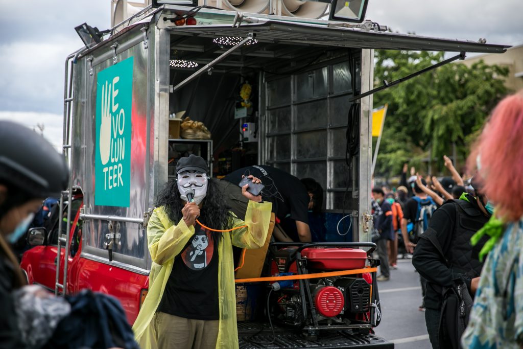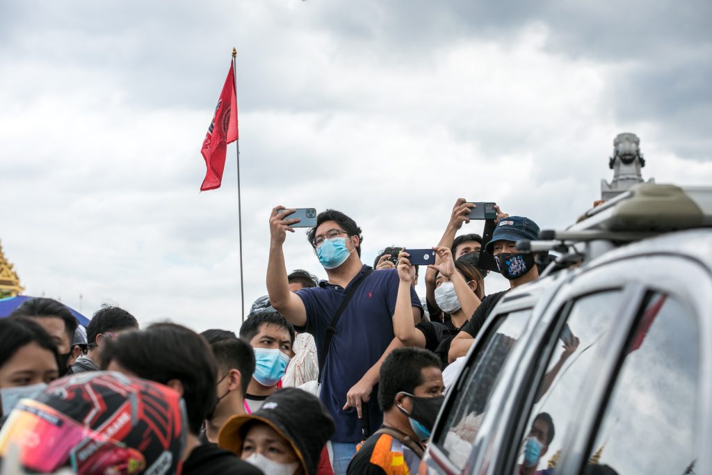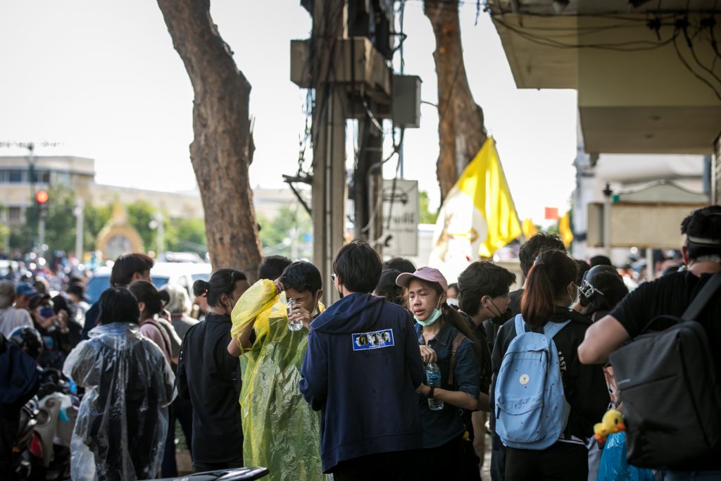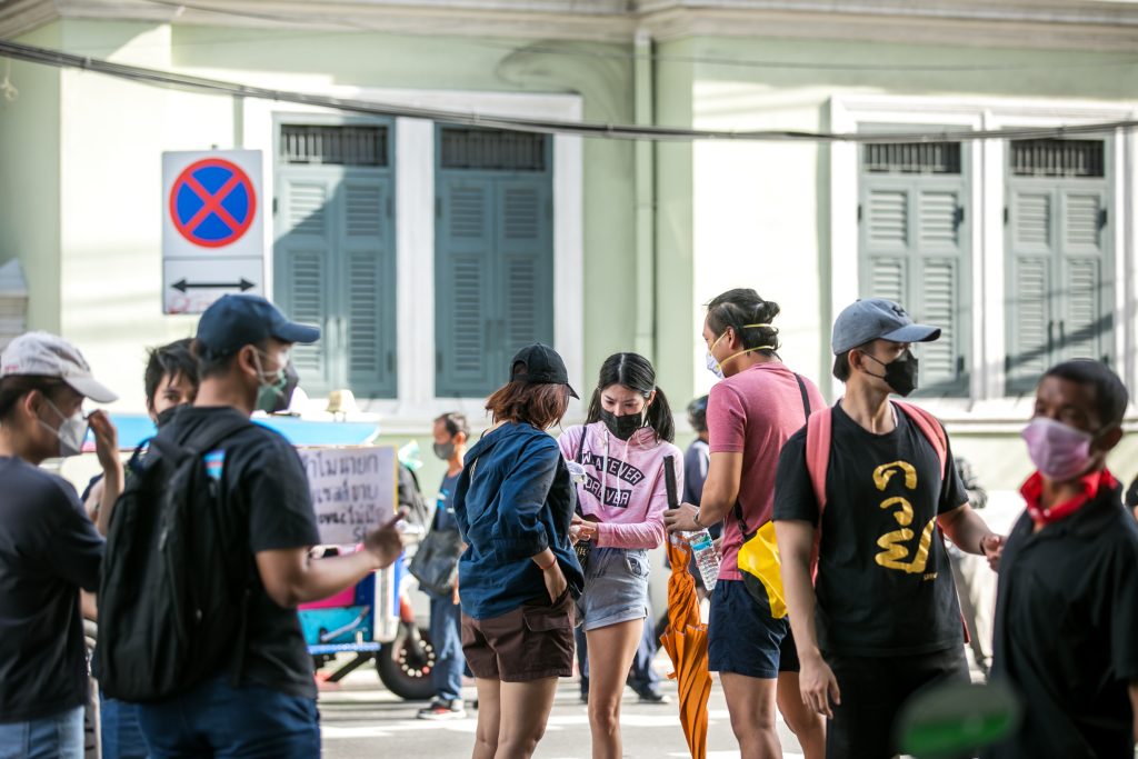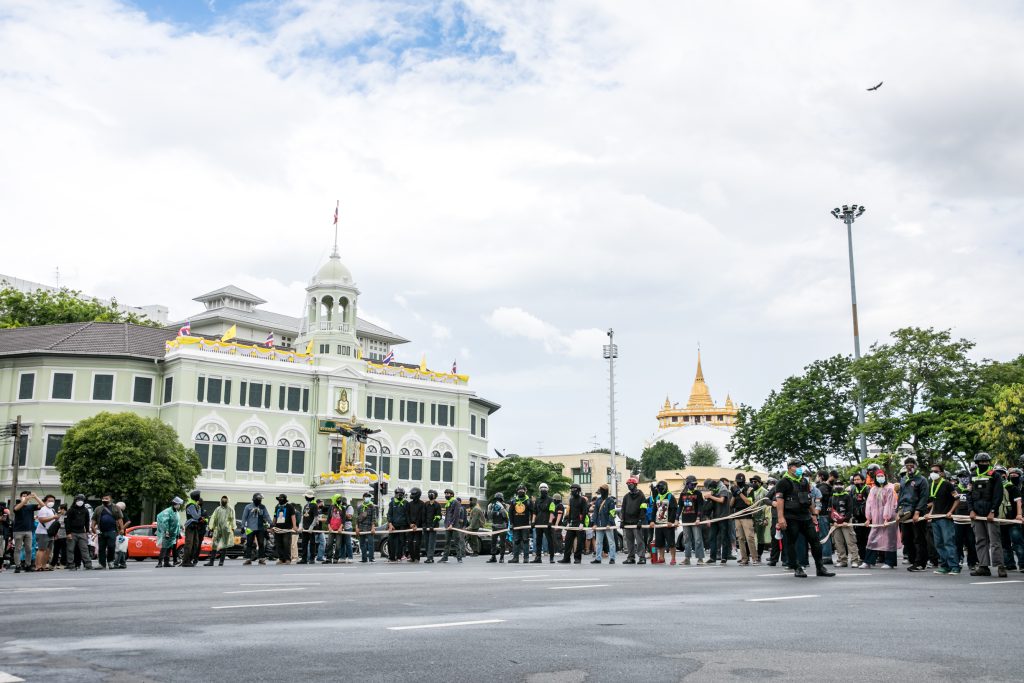 ภาพกิจกรรมการชุมนุมท่ามกลางการแพร่ระบาดของโควิด-19 นำโดยเยาวชนปลดแอก พร้อมกลุ่มแนวร่วมต่างๆ กับข้อเรียกร้อง 3 ข้อ คือ พล.อ.ประยุทธ์ จันทร์โอชา ต้องลาออกโดยไม่มีเงื่อนไข ปรับลดงบประมาณสถาบัน-กองทัพเพื่อนำมาใช้แก้ปัญหาโควิด และ หยุดซื้อวัคซีนด้อยคุณภาพที่เอื้อประโยชน์ต่อนายทุน แล้วไปจัดหาวัคซีนคุณภาพสูงมาฉีดให้กับประชาชนโดยเร็วที่สุด ผู้ชุมนุมตั้งขบวนบริเวณอนุสาวรีย์ประชาธิปไตย ก่อนมุ่งหน้าไปยังทำเนียบรัฐบาล โดยมีการแสดงออกในหลายรูปแบบ ทั้งป้ายข้อความต่างๆ หุ่นฟางที่ทำคล้ายศพเป็นสัญลักษณ์แทนผู้ที่เสียชีวิตจากโควิดจำนวนมากภายใต้การบริหารที่ล้มเหลวของรัฐบาล