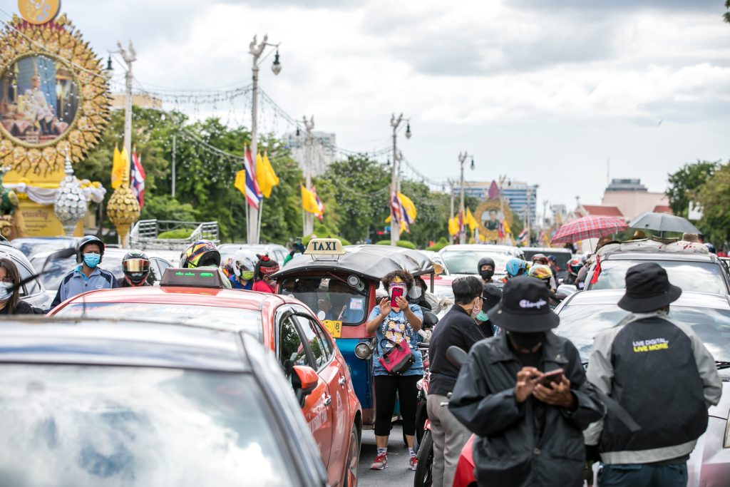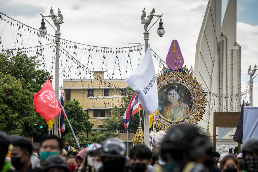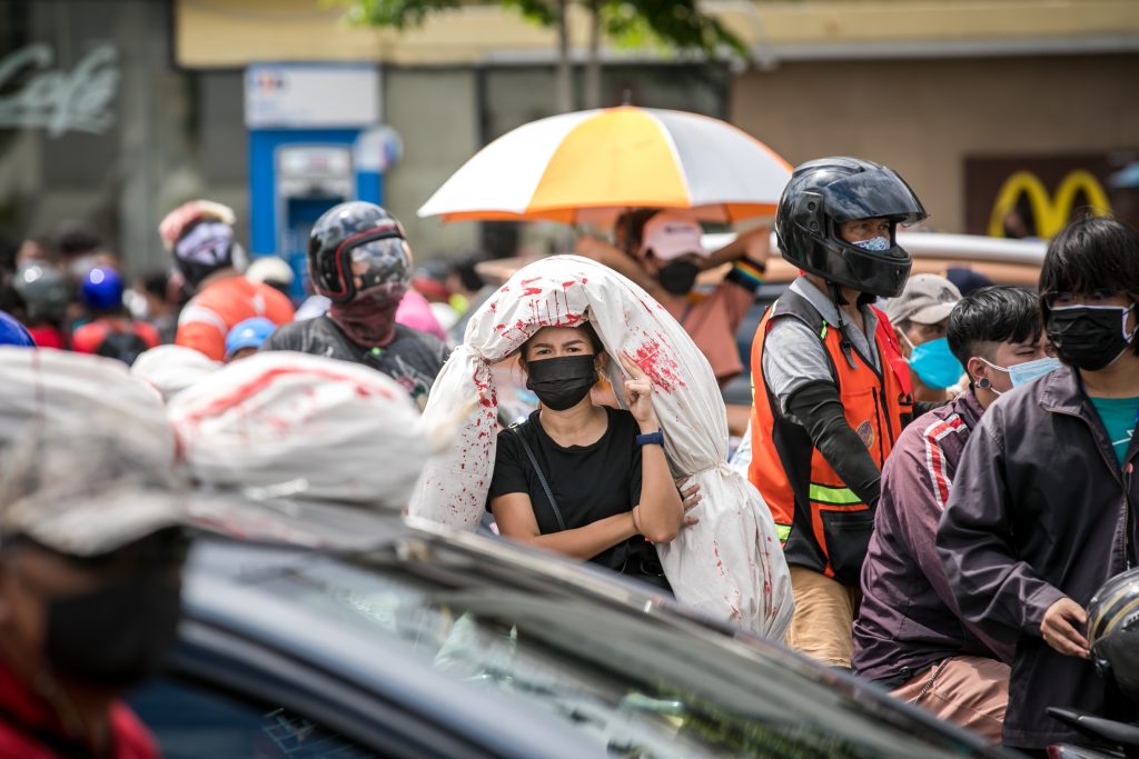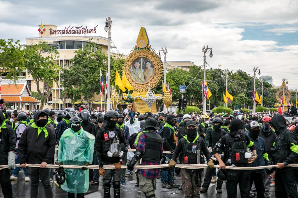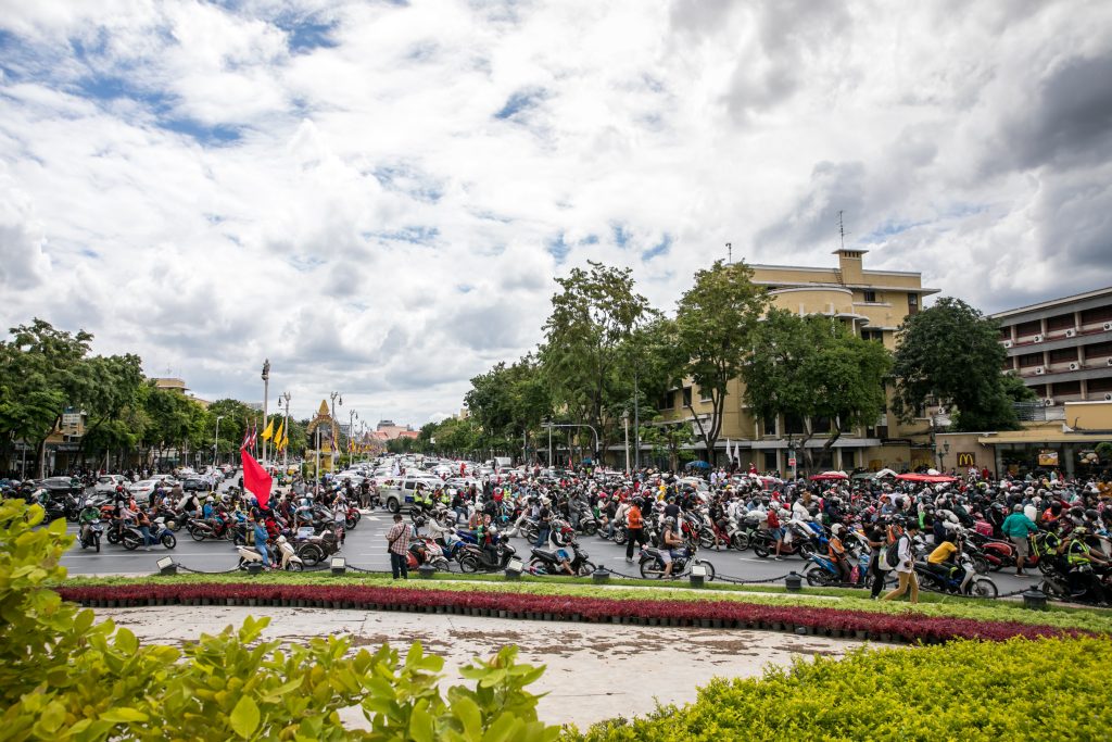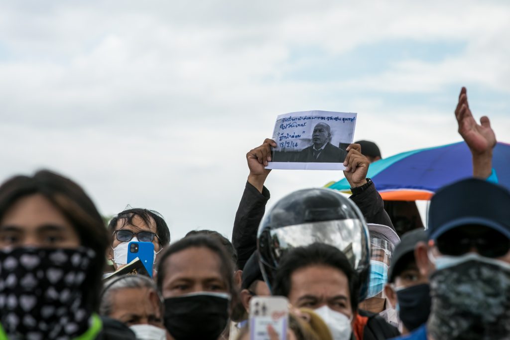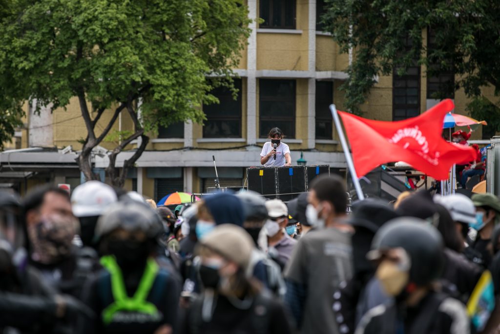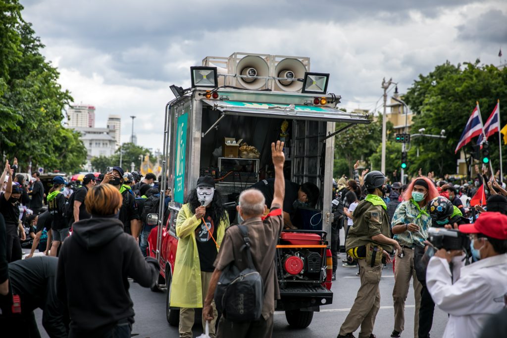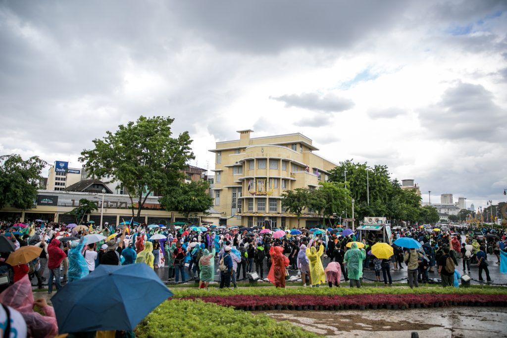 ภาพกิจกรรมการชุมนุมท่ามกลางการแพร่ระบาดของโควิด-19 นำโดยเยาวชนปลดแอก พร้อมกลุ่มแนวร่วมต่างๆ กับข้อเรียกร้อง 3 ข้อ คือ พล.อ.ประยุทธ์ จันทร์โอชา ต้องลาออกโดยไม่มีเงื่อนไข ปรับลดงบประมาณสถาบัน-กองทัพเพื่อนำมาใช้แก้ปัญหาโควิด และ หยุดซื้อวัคซีนด้อยคุณภาพที่เอื้อประโยชน์ต่อนายทุน แล้วไปจัดหาวัคซีนคุณภาพสูงมาฉีดให้กับประชาชนโดยเร็วที่สุด ผู้ชุมนุมตั้งขบวนบริเวณอนุสาวรีย์ประชาธิปไตย ก่อนมุ่งหน้าไปยังทำเนียบรัฐบาล โดยมีการแสดงออกในหลายรูปแบบ ทั้งป้ายข้อความต่างๆ หุ่นฟางที่ทำคล้ายศพเป็นสัญลักษณ์แทนผู้ที่เสียชีวิตจากโควิดจำนวนมากภายใต้การบริหารที่ล้มเหลวของรัฐบาล