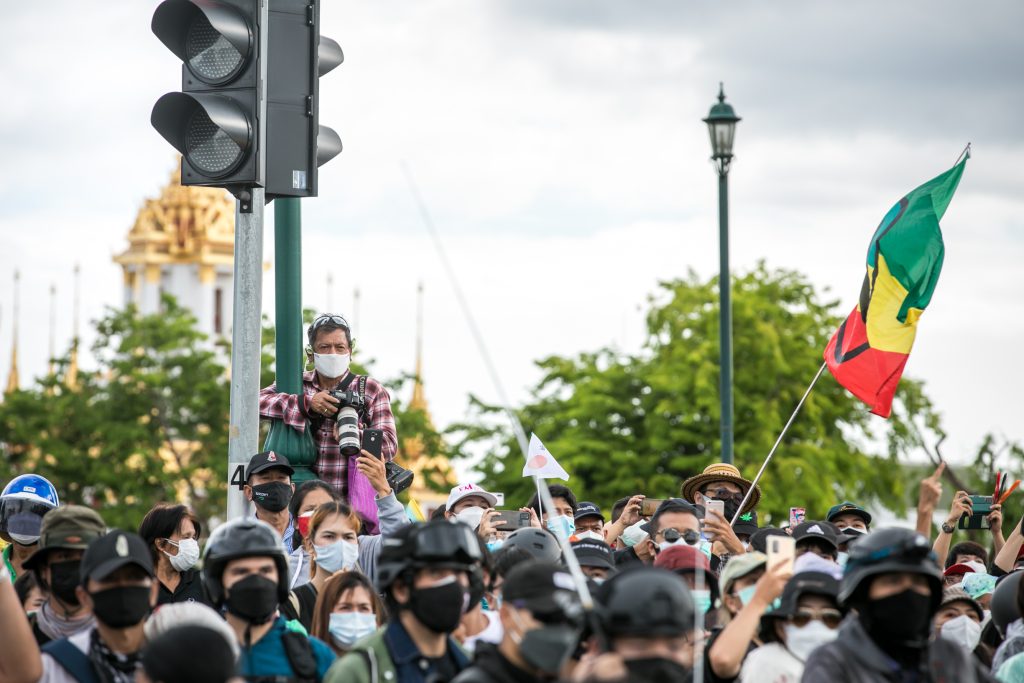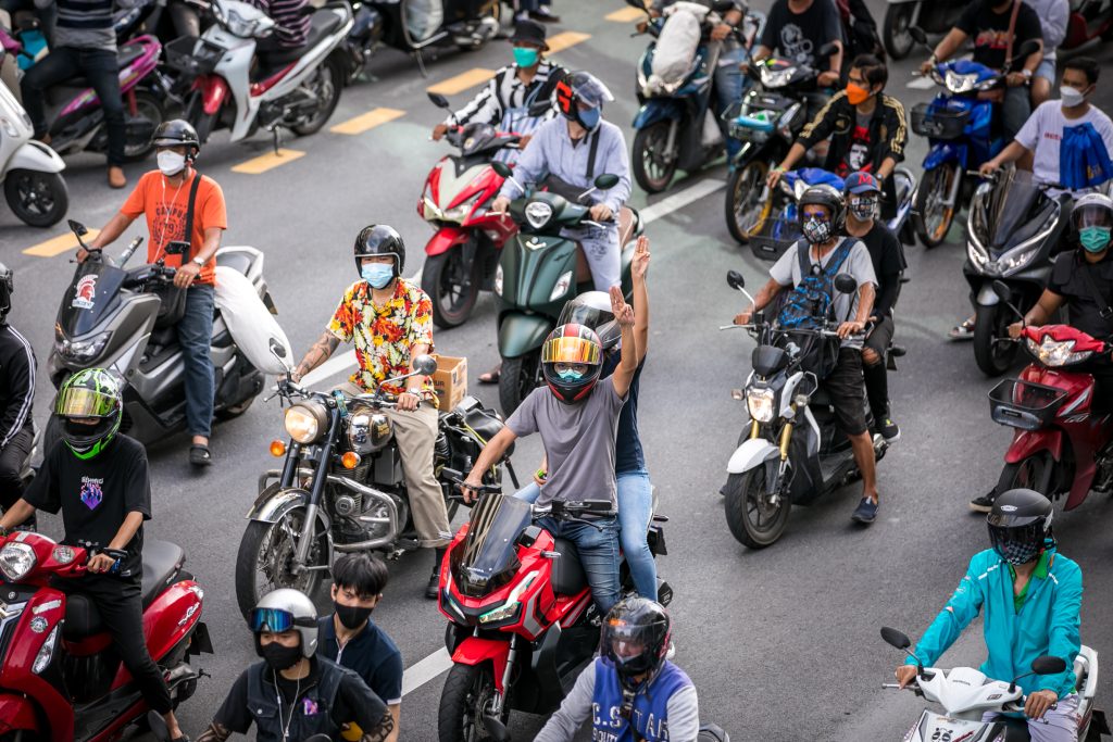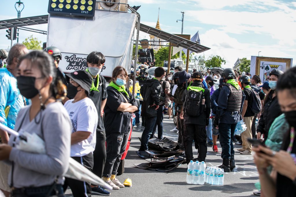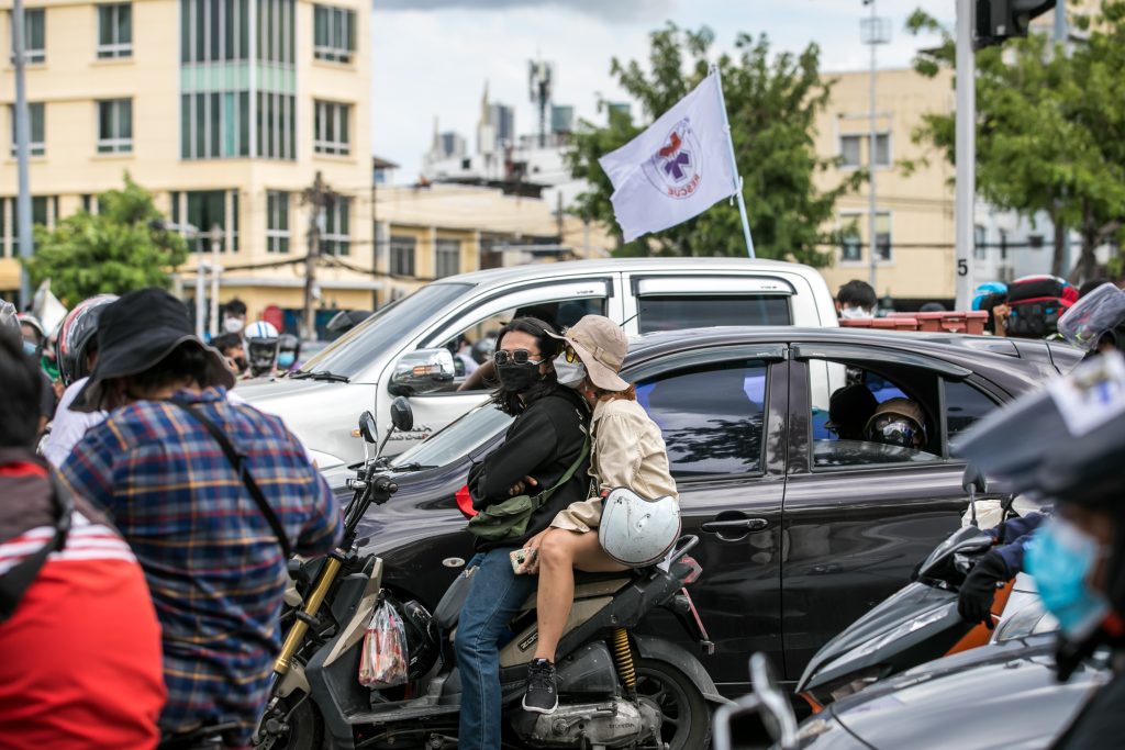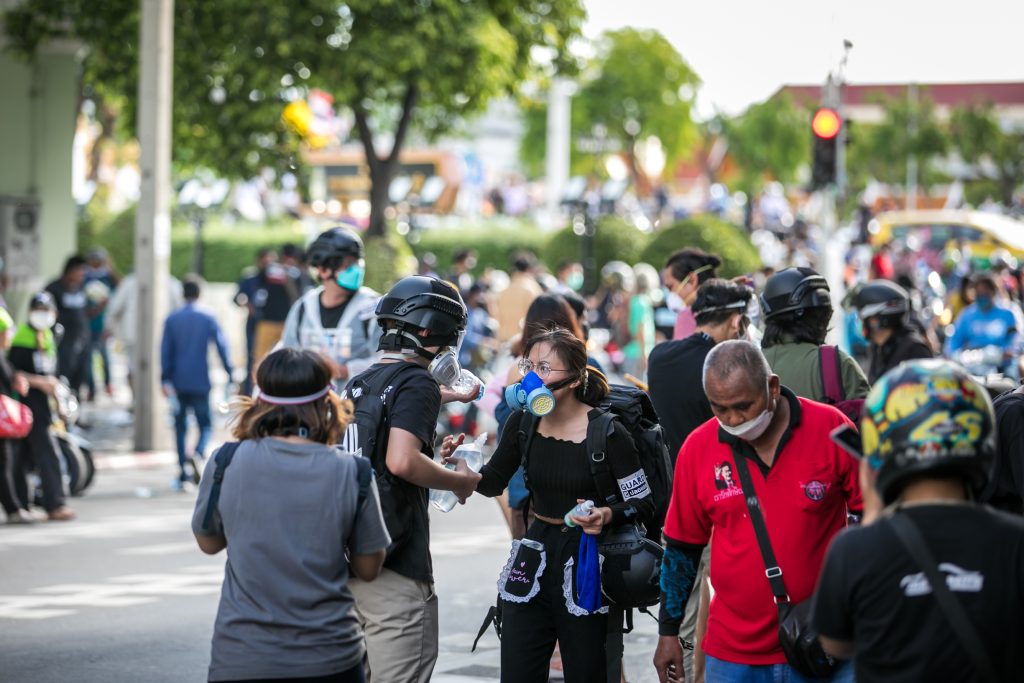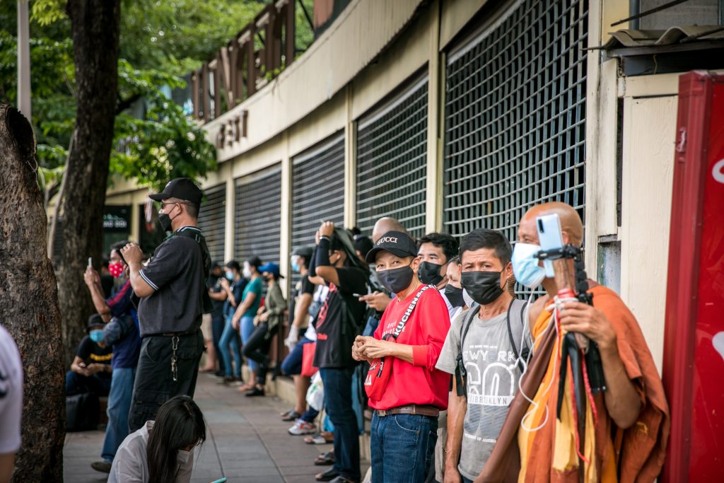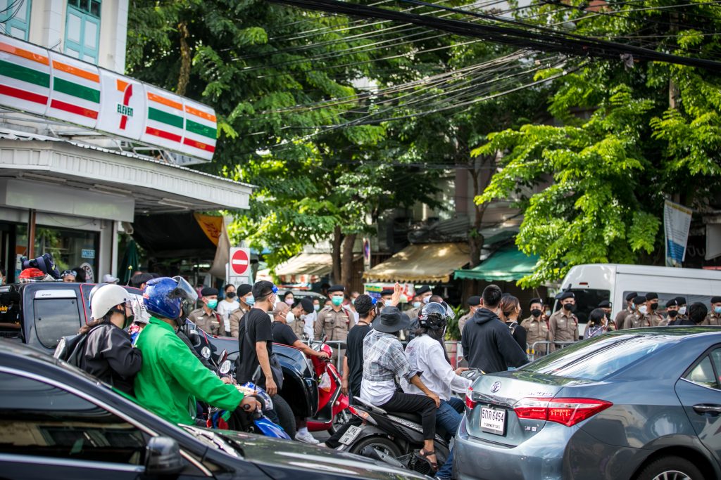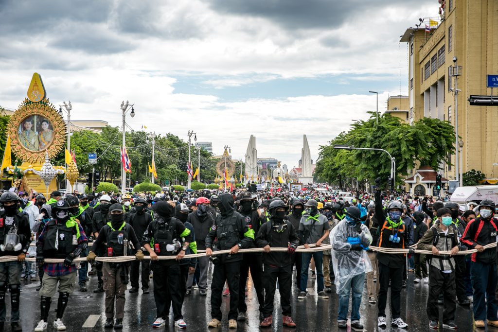 ภาพกิจกรรมการชุมนุมท่ามกลางการแพร่ระบาดของโควิด-19 นำโดยเยาวชนปลดแอก พร้อมกลุ่มแนวร่วมต่างๆ กับข้อเรียกร้อง 3 ข้อ คือ พล.อ.ประยุทธ์ จันทร์โอชา ต้องลาออกโดยไม่มีเงื่อนไข ปรับลดงบประมาณสถาบัน-กองทัพเพื่อนำมาใช้แก้ปัญหาโควิด และ หยุดซื้อวัคซีนด้อยคุณภาพที่เอื้อประโยชน์ต่อนายทุน แล้วไปจัดหาวัคซีนคุณภาพสูงมาฉีดให้กับประชาชนโดยเร็วที่สุด ผู้ชุมนุมตั้งขบวนบริเวณอนุสาวรีย์ประชาธิปไตย ก่อนมุ่งหน้าไปยังทำเนียบรัฐบาล โดยมีการแสดงออกในหลายรูปแบบ ทั้งป้ายข้อความต่างๆ หุ่นฟางที่ทำคล้ายศพเป็นสัญลักษณ์แทนผู้ที่เสียชีวิตจากโควิดจำนวนมากภายใต้การบริหารที่ล้มเหลวของรัฐบาล