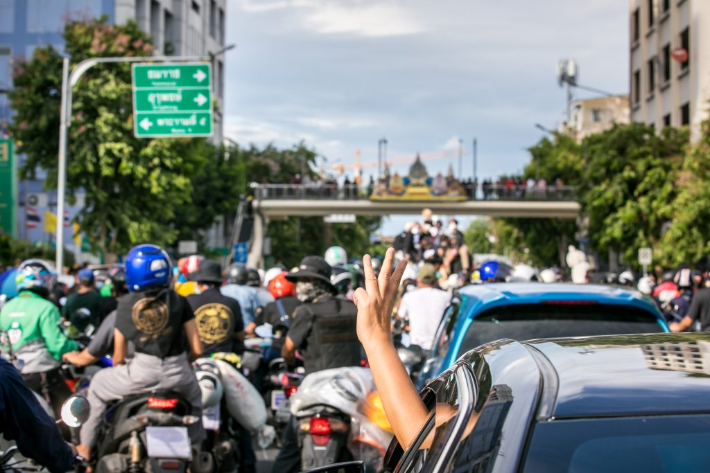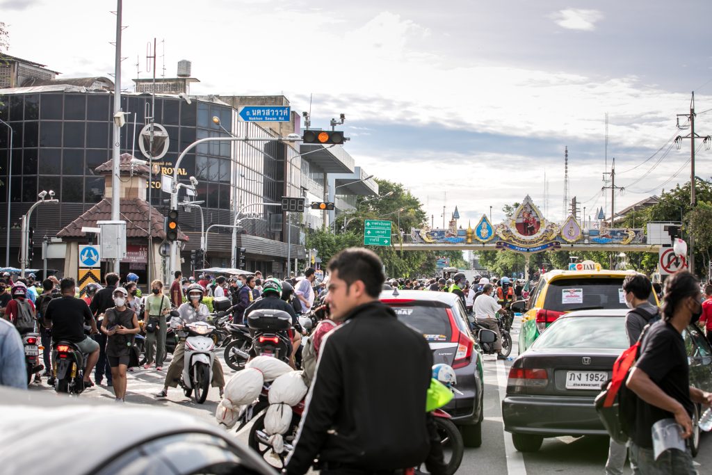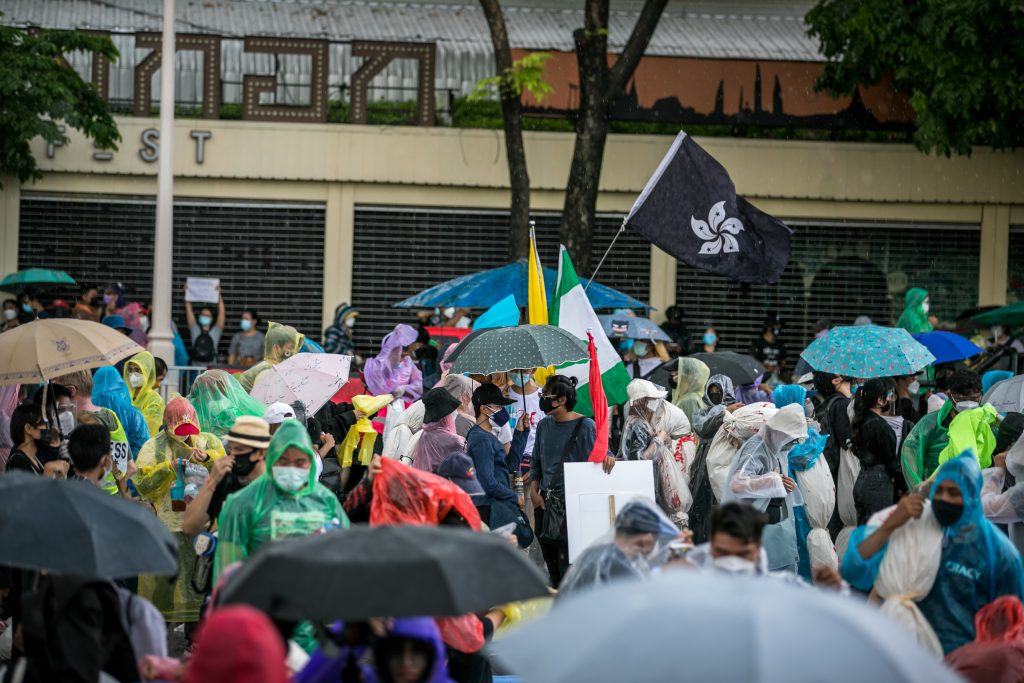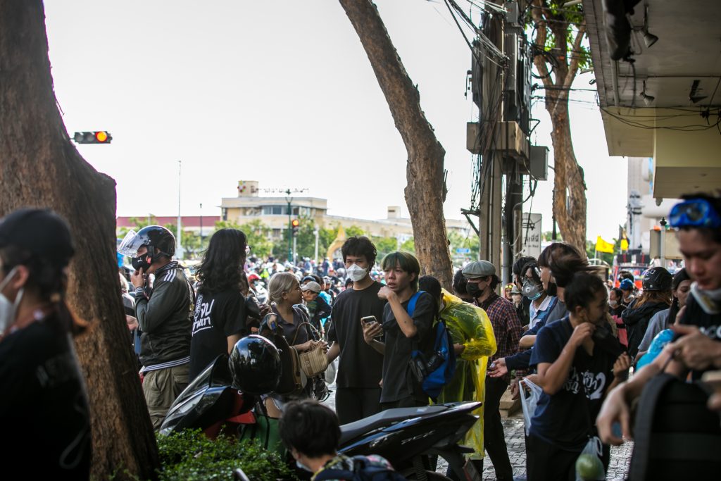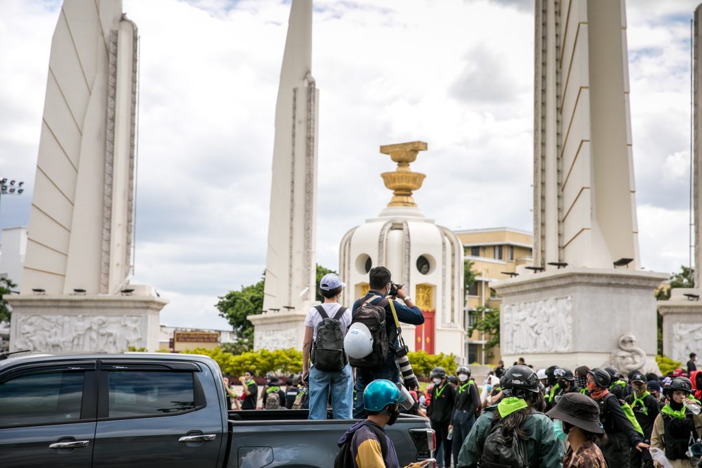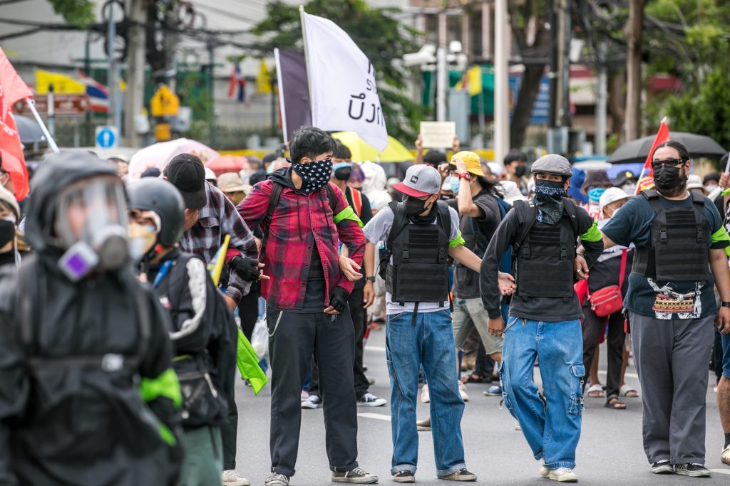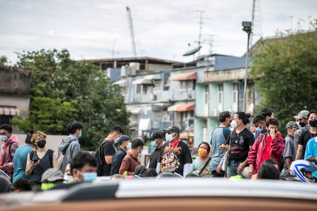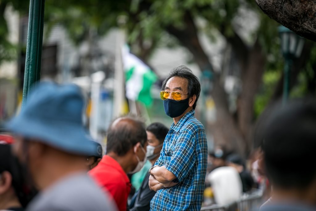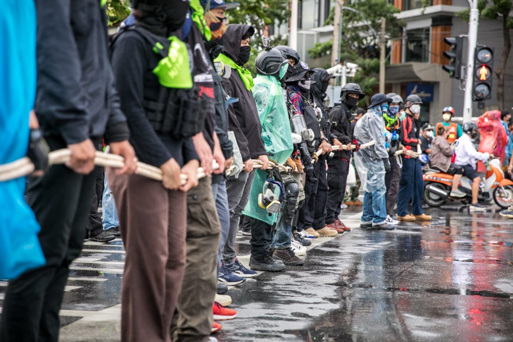 ภาพกิจกรรมการชุมนุมท่ามกลางการแพร่ระบาดของโควิด-19 นำโดยเยาวชนปลดแอก พร้อมกลุ่มแนวร่วมต่างๆ กับข้อเรียกร้อง 3 ข้อ คือ พล.อ.ประยุทธ์ จันทร์โอชา ต้องลาออกโดยไม่มีเงื่อนไข ปรับลดงบประมาณสถาบัน-กองทัพเพื่อนำมาใช้แก้ปัญหาโควิด และ หยุดซื้อวัคซีนด้อยคุณภาพที่เอื้อประโยชน์ต่อนายทุน แล้วไปจัดหาวัคซีนคุณภาพสูงมาฉีดให้กับประชาชนโดยเร็วที่สุด ผู้ชุมนุมตั้งขบวนบริเวณอนุสาวรีย์ประชาธิปไตย ก่อนมุ่งหน้าไปยังทำเนียบรัฐบาล โดยมีการแสดงออกในหลายรูปแบบ ทั้งป้ายข้อความต่างๆ หุ่นฟางที่ทำคล้ายศพเป็นสัญลักษณ์แทนผู้ที่เสียชีวิตจากโควิดจำนวนมากภายใต้การบริหารที่ล้มเหลวของรัฐบาล