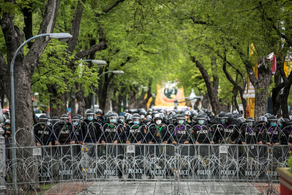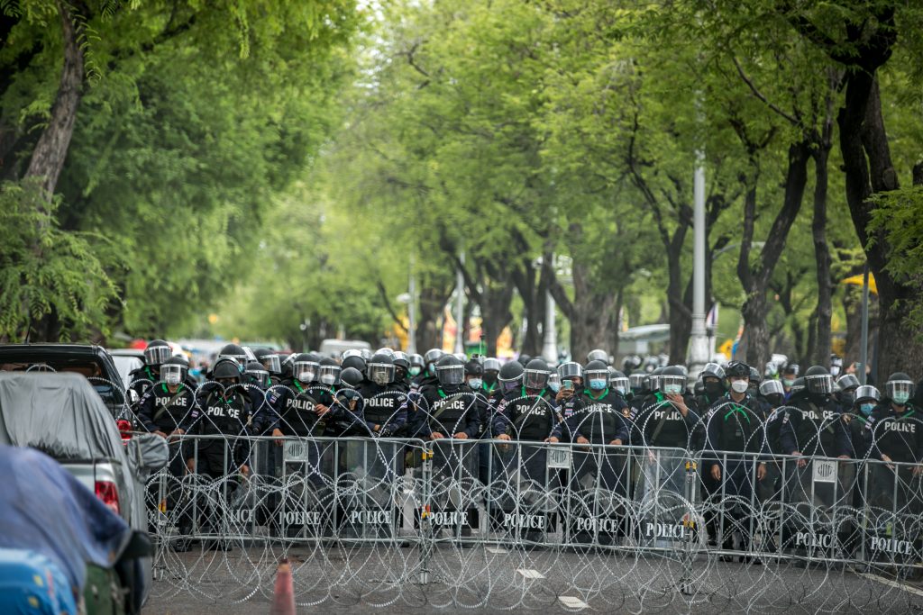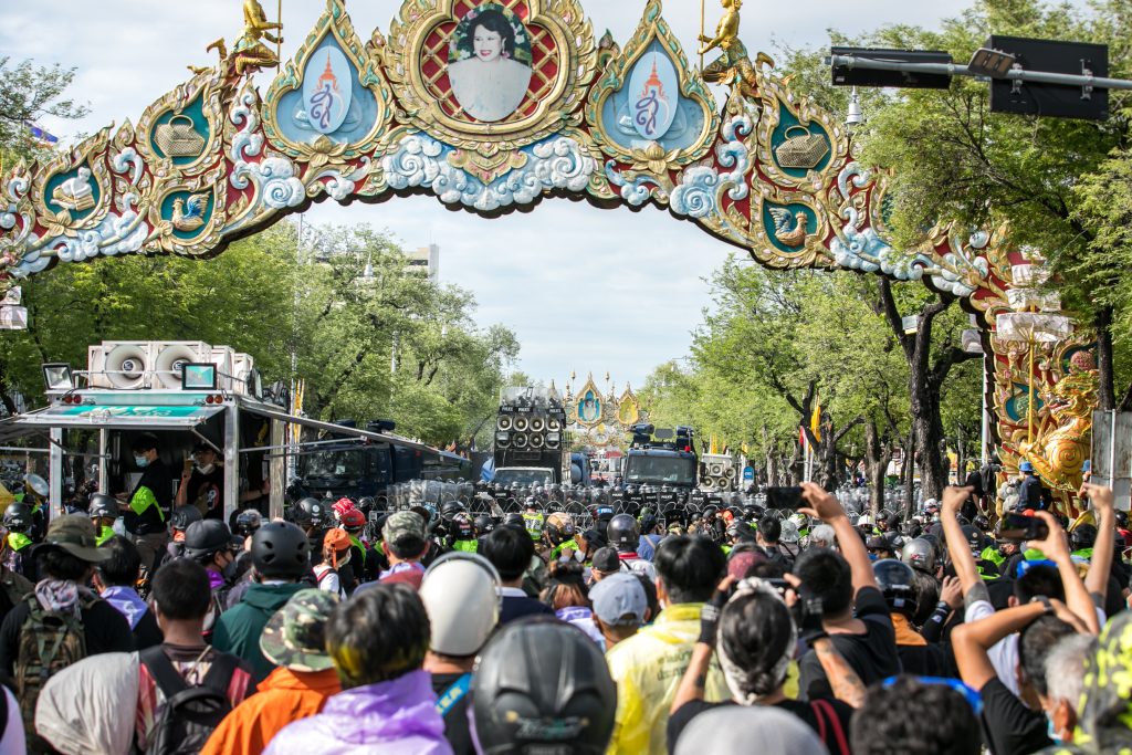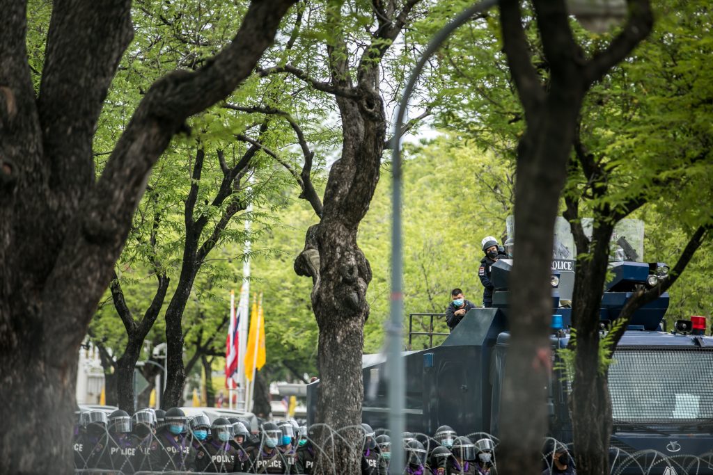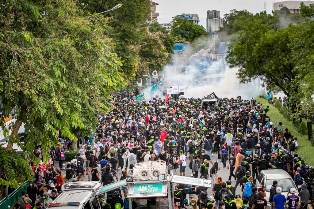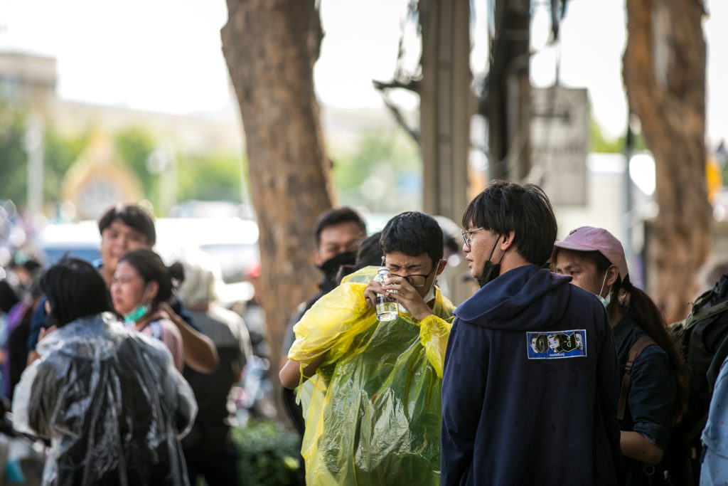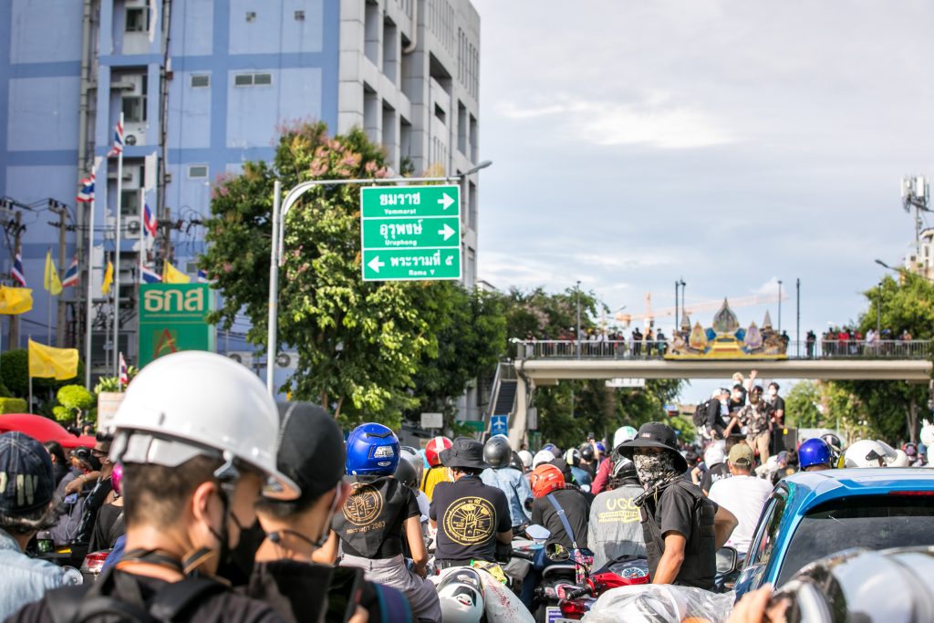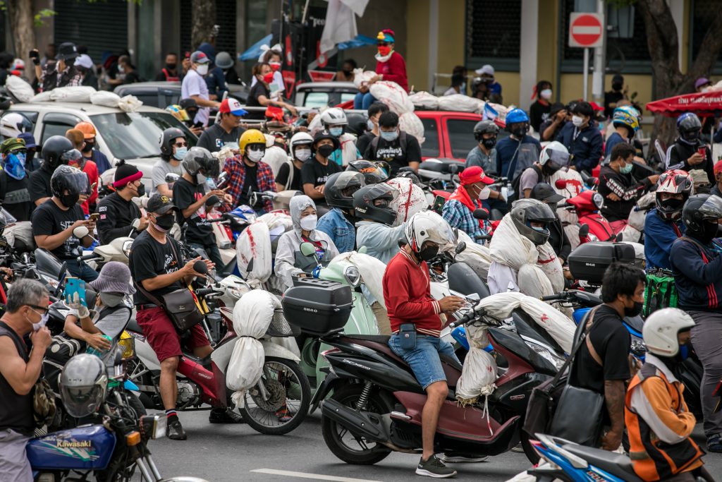 ภาพกิจกรรมการชุมนุมท่ามกลางการแพร่ระบาดของโควิด-19 นำโดยเยาวชนปลดแอก พร้อมกลุ่มแนวร่วมต่างๆ กับข้อเรียกร้อง 3 ข้อ คือ พล.อ.ประยุทธ์ จันทร์โอชา ต้องลาออกโดยไม่มีเงื่อนไข ปรับลดงบประมาณสถาบัน-กองทัพเพื่อนำมาใช้แก้ปัญหาโควิด และ หยุดซื้อวัคซีนด้อยคุณภาพที่เอื้อประโยชน์ต่อนายทุน แล้วไปจัดหาวัคซีนคุณภาพสูงมาฉีดให้กับประชาชนโดยเร็วที่สุด ผู้ชุมนุมตั้งขบวนบริเวณอนุสาวรีย์ประชาธิปไตย ก่อนมุ่งหน้าไปยังทำเนียบรัฐบาล โดยมีการแสดงออกในหลายรูปแบบ ทั้งป้ายข้อความต่างๆ หุ่นฟางที่ทำคล้ายศพเป็นสัญลักษณ์แทนผู้ที่เสียชีวิตจากโควิดจำนวนมากภายใต้การบริหารที่ล้มเหลวของรัฐบาล