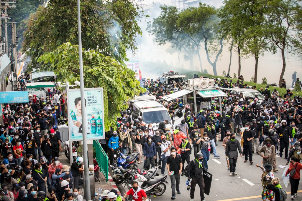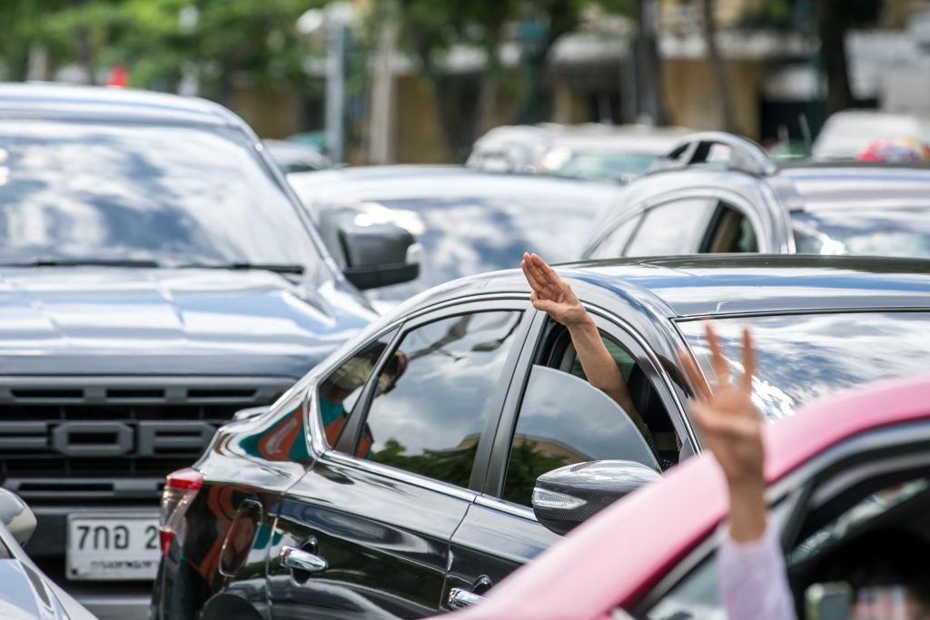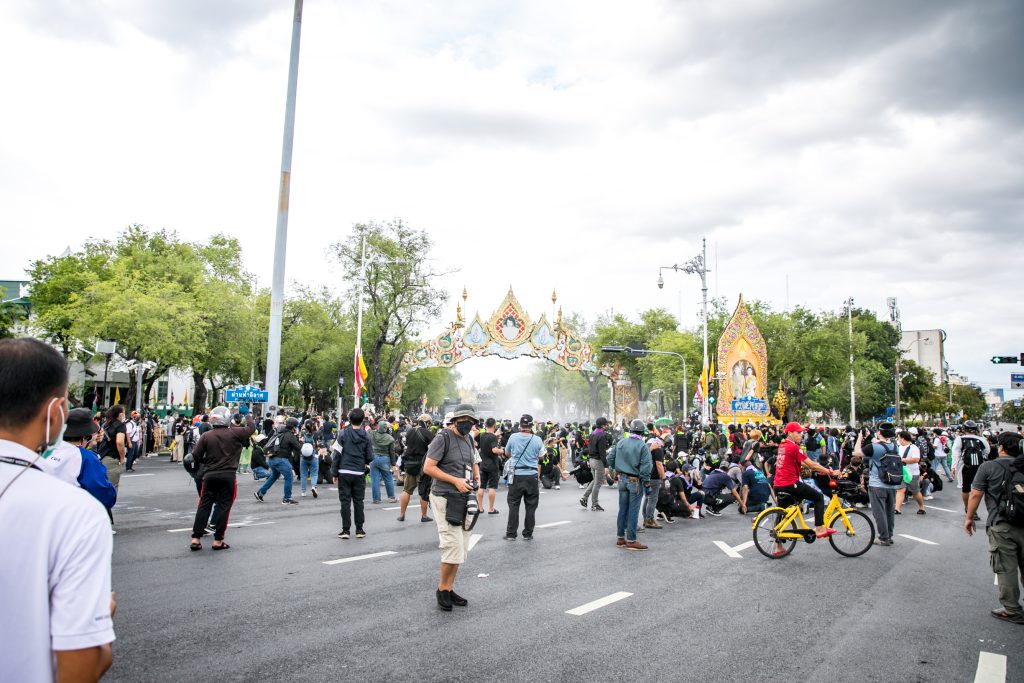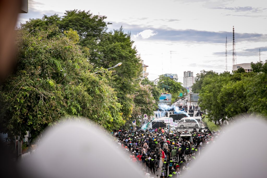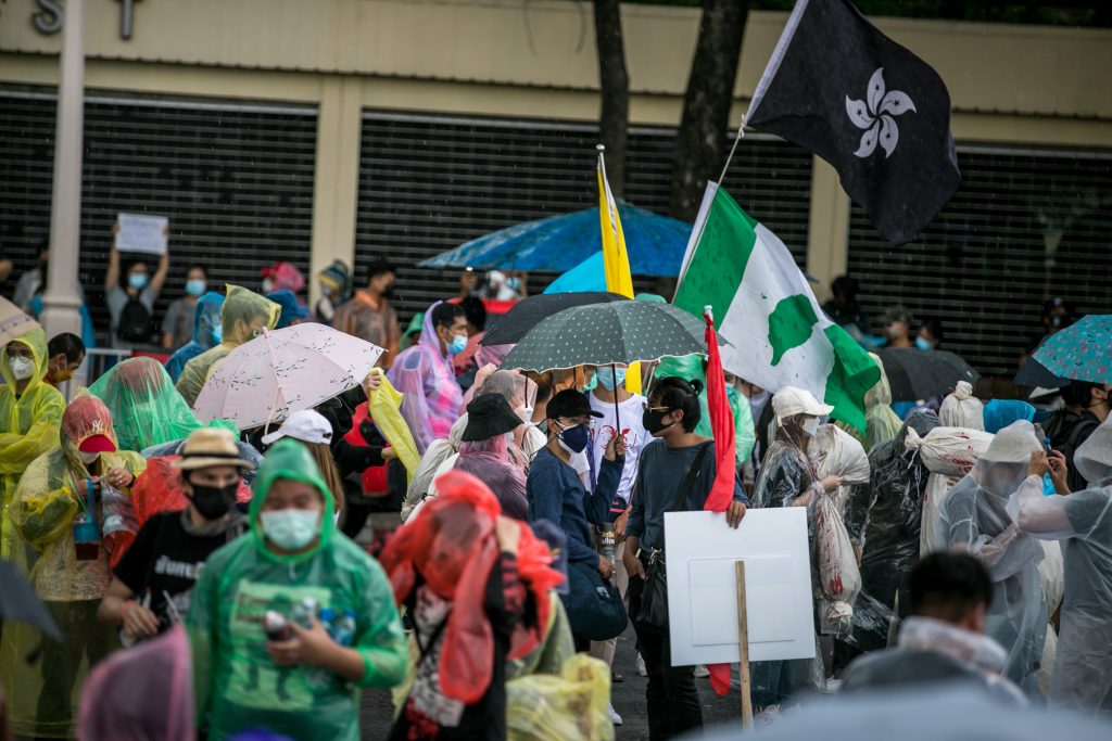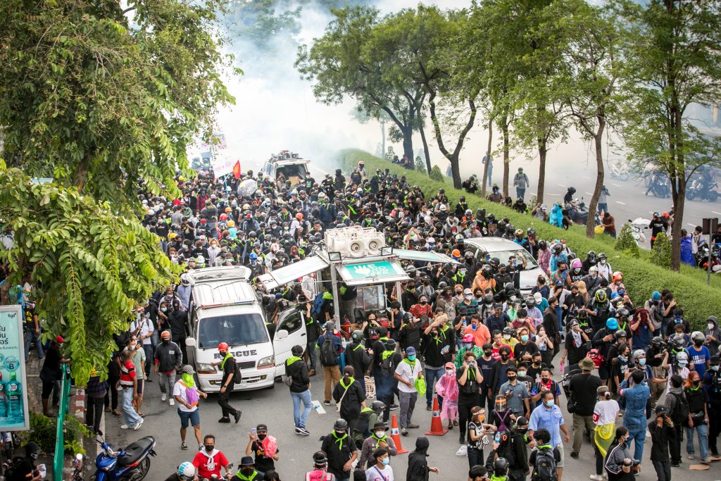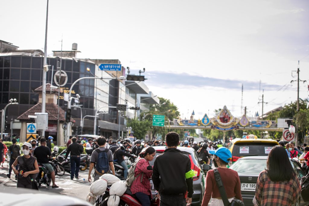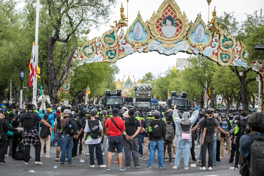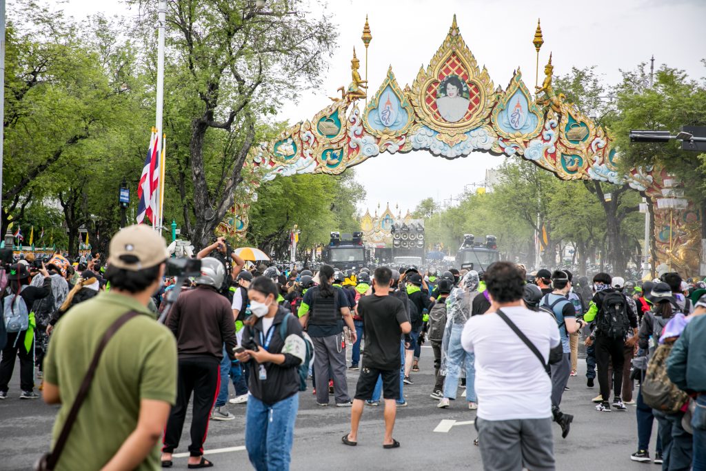 ภาพกิจกรรมการชุมนุมท่ามกลางการแพร่ระบาดของโควิด-19 นำโดยเยาวชนปลดแอก พร้อมกลุ่มแนวร่วมต่างๆ กับข้อเรียกร้อง 3 ข้อ คือ พล.อ.ประยุทธ์ จันทร์โอชา ต้องลาออกโดยไม่มีเงื่อนไข ปรับลดงบประมาณสถาบัน-กองทัพเพื่อนำมาใช้แก้ปัญหาโควิด และ หยุดซื้อวัคซีนด้อยคุณภาพที่เอื้อประโยชน์ต่อนายทุน แล้วไปจัดหาวัคซีนคุณภาพสูงมาฉีดให้กับประชาชนโดยเร็วที่สุด ผู้ชุมนุมตั้งขบวนบริเวณอนุสาวรีย์ประชาธิปไตย ก่อนมุ่งหน้าไปยังทำเนียบรัฐบาล โดยมีการแสดงออกในหลายรูปแบบ ทั้งป้ายข้อความต่างๆ หุ่นฟางที่ทำคล้ายศพเป็นสัญลักษณ์แทนผู้ที่เสียชีวิตจากโควิดจำนวนมากภายใต้การบริหารที่ล้มเหลวของรัฐบาล