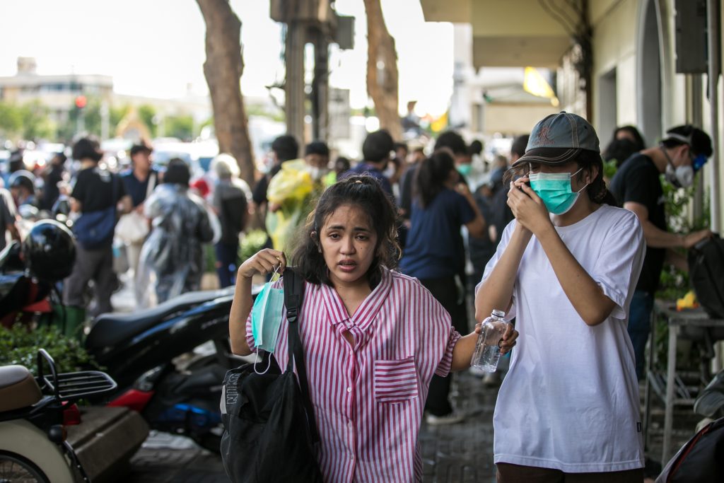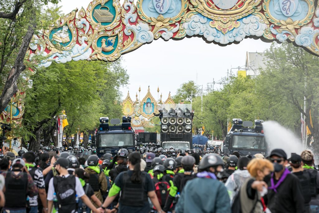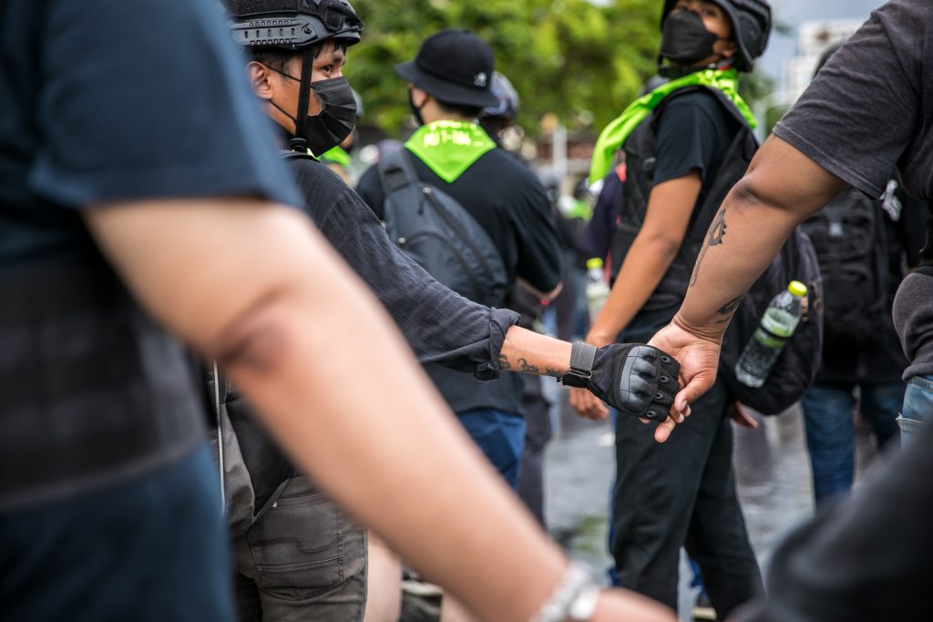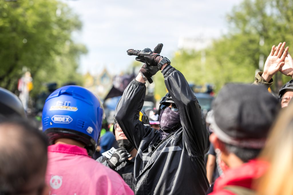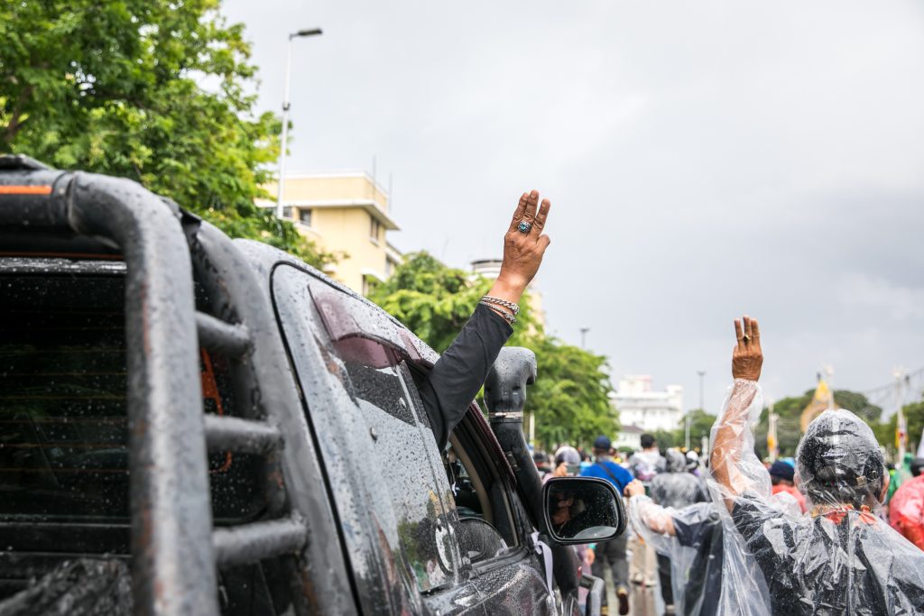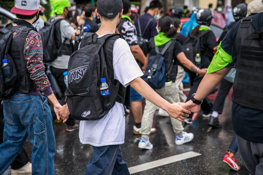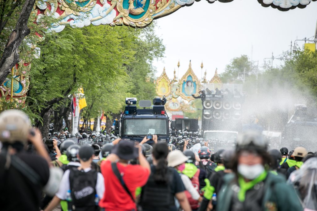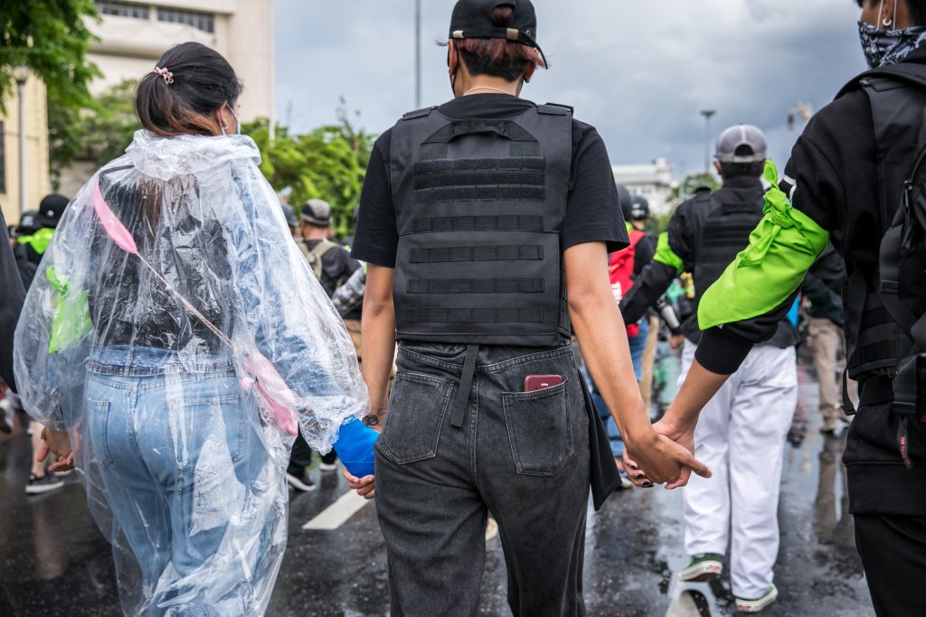 ภาพกิจกรรมการชุมนุมท่ามกลางการแพร่ระบาดของโควิด-19 นำโดยเยาวชนปลดแอก พร้อมกลุ่มแนวร่วมต่างๆ กับข้อเรียกร้อง 3 ข้อ คือ พล.อ.ประยุทธ์ จันทร์โอชา ต้องลาออกโดยไม่มีเงื่อนไข ปรับลดงบประมาณสถาบัน-กองทัพเพื่อนำมาใช้แก้ปัญหาโควิด และ หยุดซื้อวัคซีนด้อยคุณภาพที่เอื้อประโยชน์ต่อนายทุน แล้วไปจัดหาวัคซีนคุณภาพสูงมาฉีดให้กับประชาชนโดยเร็วที่สุด ผู้ชุมนุมตั้งขบวนบริเวณอนุสาวรีย์ประชาธิปไตย ก่อนมุ่งหน้าไปยังทำเนียบรัฐบาล โดยมีการแสดงออกในหลายรูปแบบ ทั้งป้ายข้อความต่างๆ หุ่นฟางที่ทำคล้ายศพเป็นสัญลักษณ์แทนผู้ที่เสียชีวิตจากโควิดจำนวนมากภายใต้การบริหารที่ล้มเหลวของรัฐบาล