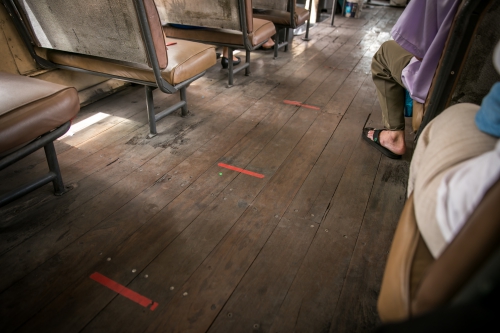 มีเจลแอลกอฮอล์ให้บริการโดยจัดเตรียมไว้บริเวณบันไดทางขึ้นลงรถ มีสัญลักษณ์ที่เบาะของผู้โดยสาร และที่พื้นเพื่อเตือนให้รักษาระยะห่าง ผู้โดยสารสวมหน้ากากอนามัยกันเป็นอย่างดี
