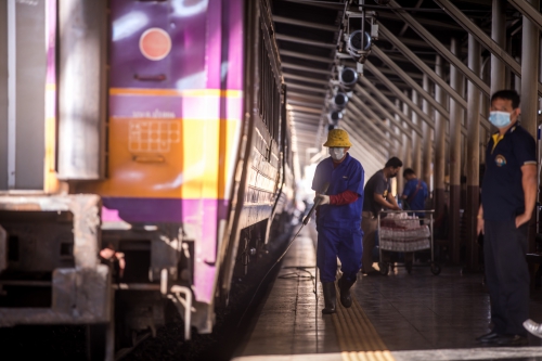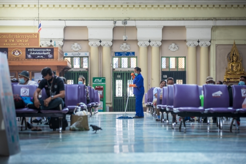 ภาพความเงียบเหงาของสถานีรถไฟหัวลำโพง จากสถานการณ์การแพร่ระบาดของโรคติดเชื้อไวรัสโคโรนา 2019