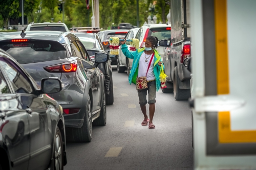 เด็กขายพวงมาลัย สี่แยกราชดำเนิน ในช่วงสถานการณ์โควิด 19