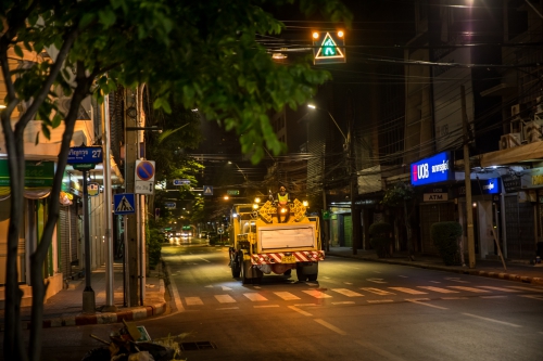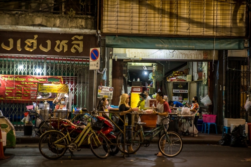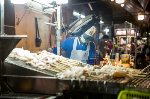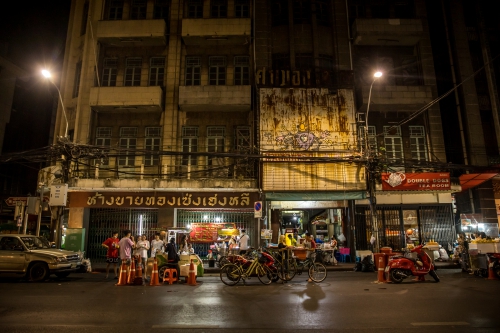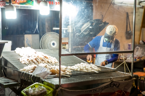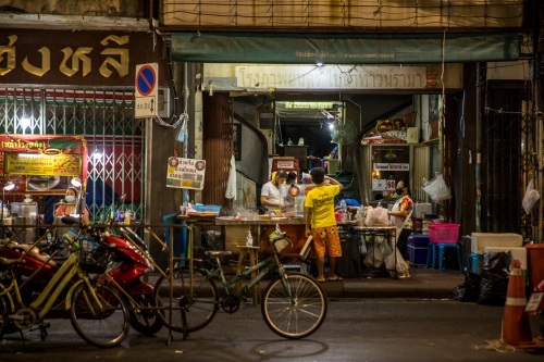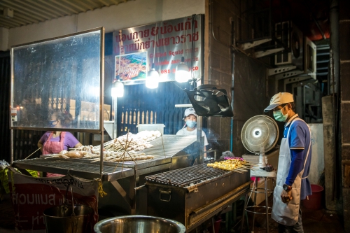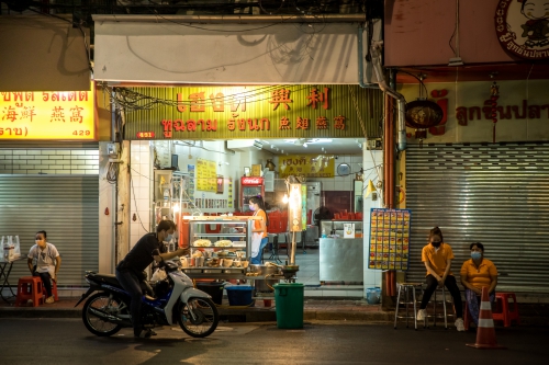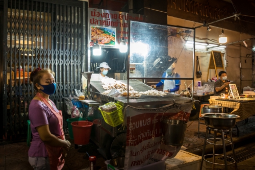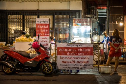 งดให้บริการลูกค้ารับประทานอาหารที่ร้านหลัง 21.00-06.00 น. ตามประกาศฉบับใหม่ของกรุงเทพมหานคร ที่ออกมาตรการคุมเข้มร้านอาหาร เพื่อป้องกันการแพร่ระบาดของโรคโควิด-19 ระลอกใหม่ บรรยากาศตามร้านอาหารต่างๆ ค่อนข้างเงียบเหงา มีผู้คนมาซื้อและกินอาหารกันค่อนข้างบางตา การงดบริการลูกค้ารับประทานอาหารที่ร้าน จึงเกิดภาพผู้คนซื้ออาหารและยืนรับประทานอยู่บริเวณหน้าร้าน บางก็จอดรถซื้อและนำกลับบ้าน