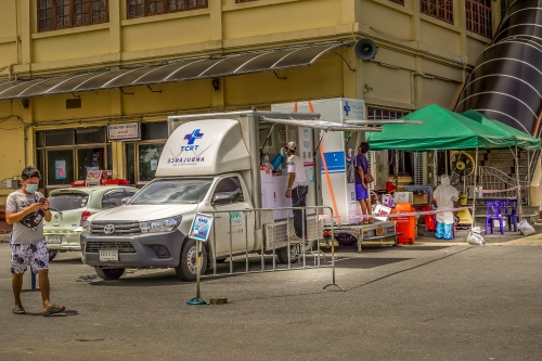 จุดตรวจโควิดในกรุงเทพมหานคร วัดโกมุทพุทธรังสี เขตทวีวัฒนา